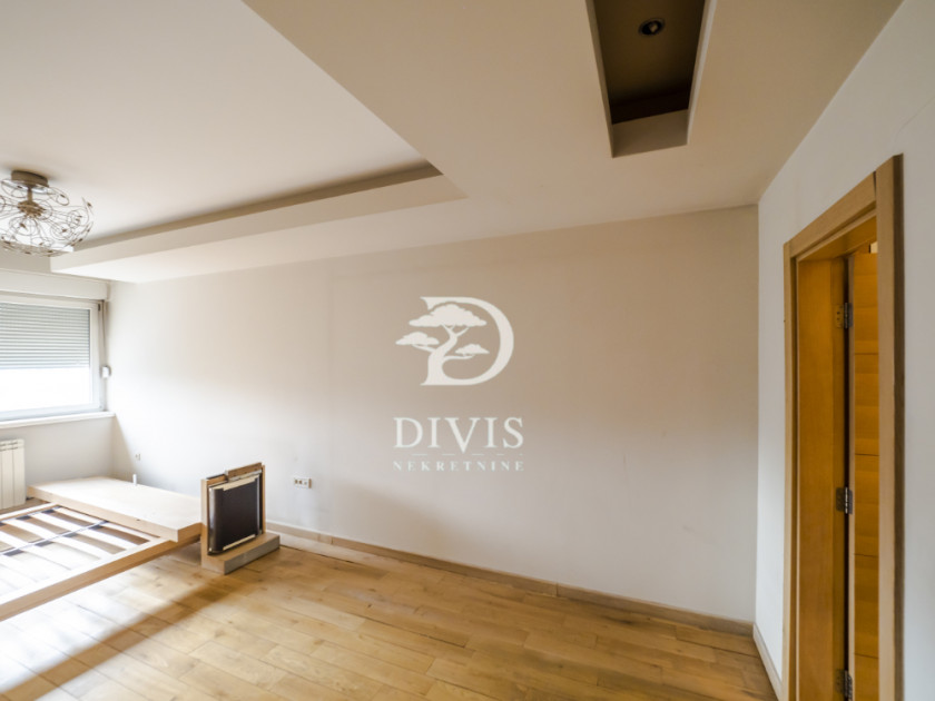 Struktura: predsoblje, hodnik, garderober, dnevni boravak sa trpezarijom i kuhinjom (REX uređaji, Forber aspirator), tri spavaće sobe od kojih je jedna master sa sopstvenim kupatilom, kupatilo, gostinski toalet, lođa i terasa. Enterijer: tarket hrastov parket, aluminijumska stolarija, dekorativna rasveta, inverter klime, centralno grejanje. Stan poseduje pravo korišćenja garažnog mesta. Lokacija je idealna – u blizini škola, vrtića, prodavnica, Doma zdravlja i javnog prevoza.
