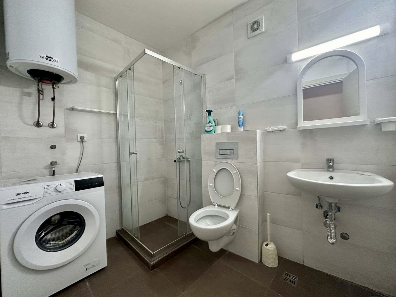 Opis: Izdaje se nov, jednosoban, namješten stan 45m2, na 1.spratu nove zgrade na Zabjelu.