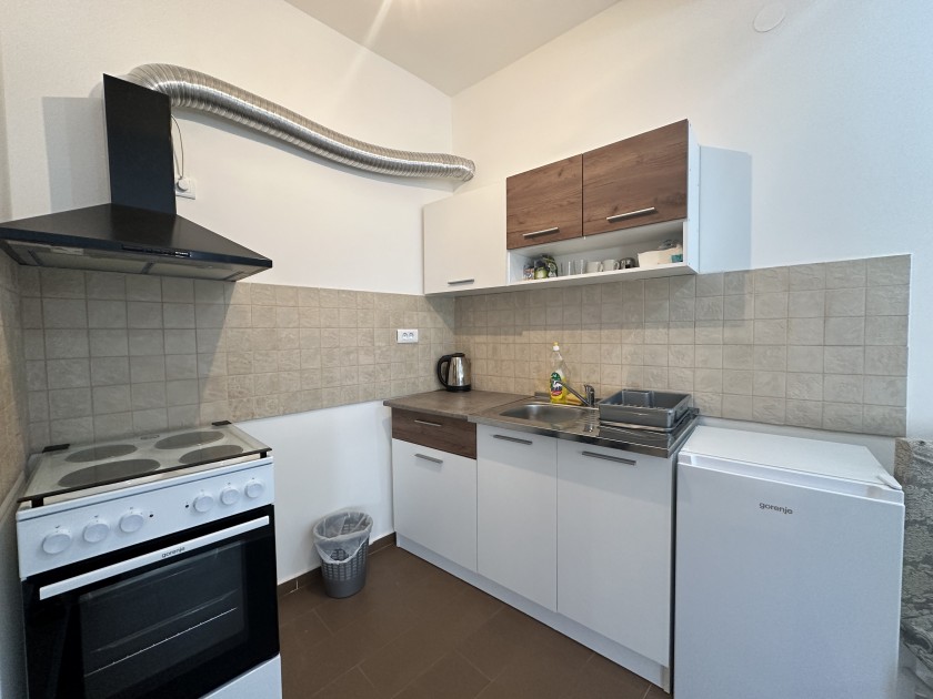 Posjeduje dnevni boravak sa trpezarijom i kuhinjom, spavaću sobu, kupatilo i terasu.