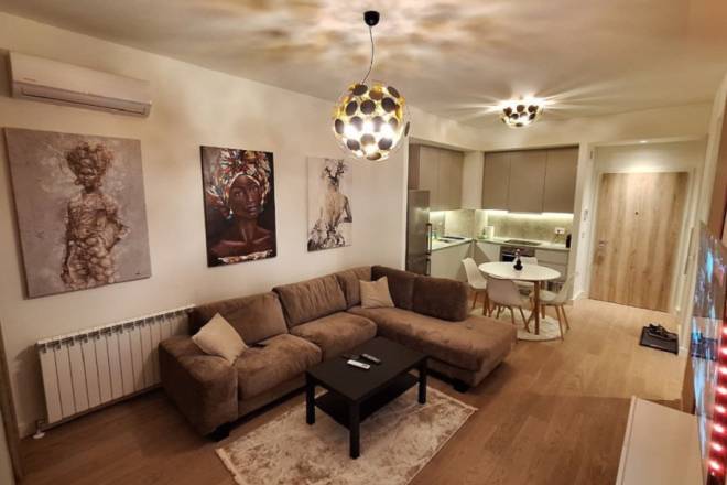 Opis: Na prodaju moderan dvosoban stan površine 54m2, u luksuznoj zgradi BW Sole na prvom spratu. Stan se prodaje kompletno opremljen i odmah useljiv.