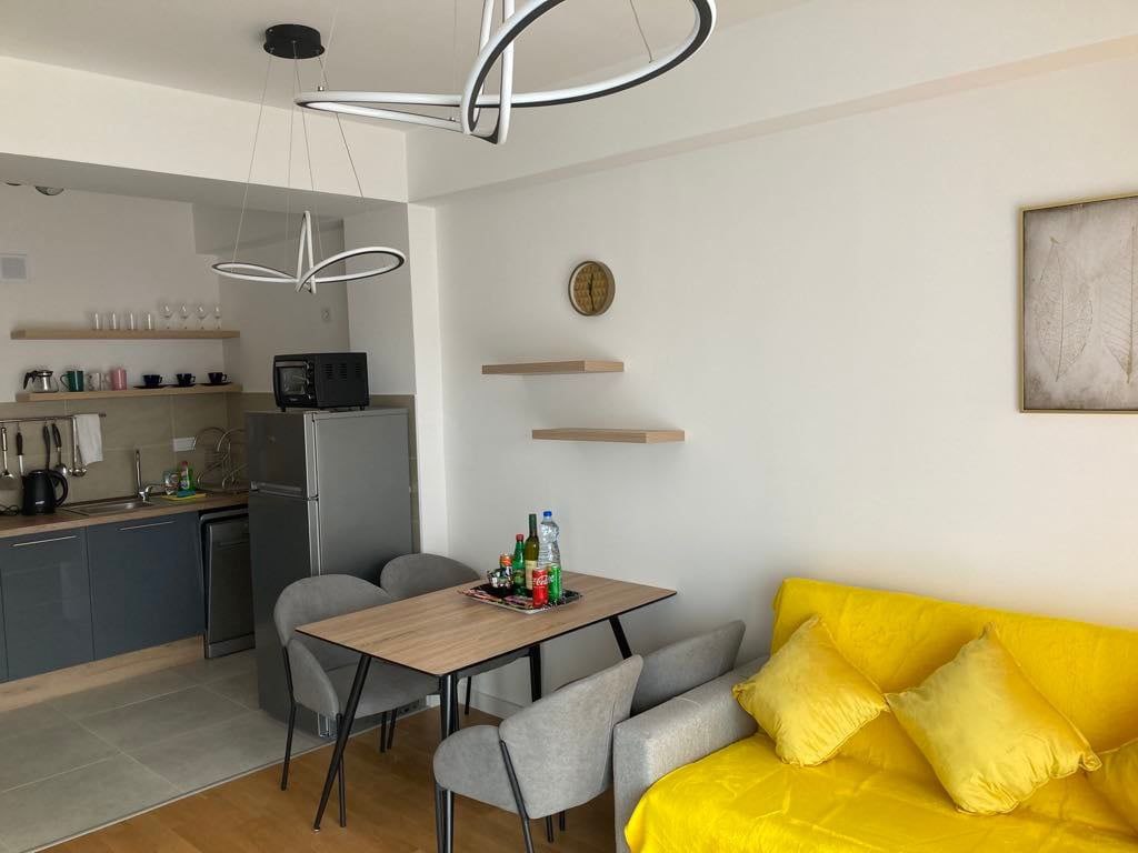 Развитая инфраструктура района, супермаркет на первом этаже здания, море в 5 минутах хотьбы, кофейни и рестораны.