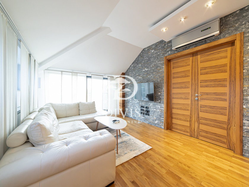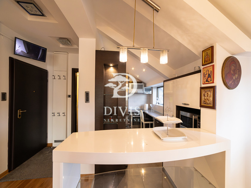 Nalazi se na četvrtom, ujedno i poslednjem spratu manje zgrade sa liftom, što mu obezbeđuje dodatnu privatnost i mir. Stan je trostrano orijentisan, izuzetno svetao, sa velikim brojem klasičnih prozora, bez krovnih otvora. Postojeće kosine ne narušavaju funkcionalnost, već prostoru daju dodatnu toplinu i karakter.
