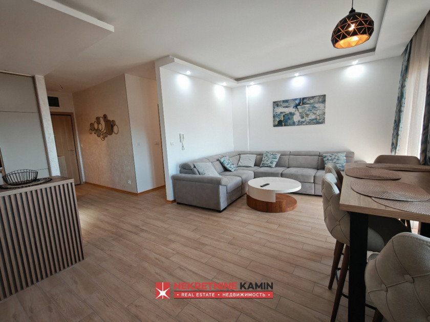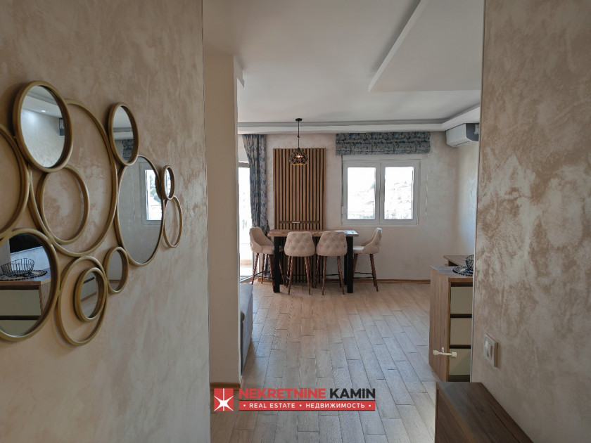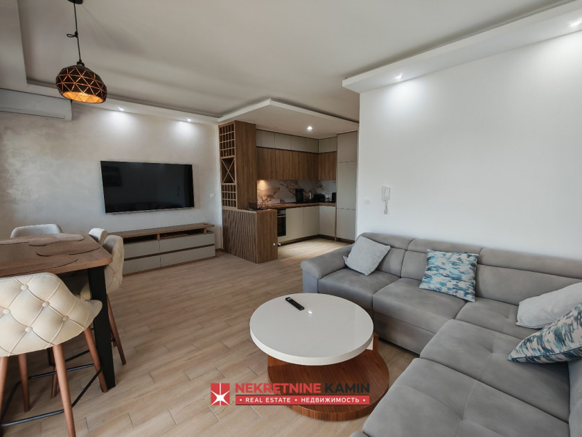 Stan se sastoji od ulaznog hodnika, toaleta, kuhinje, dodatnog hodnika, kupatila, dvije spavaće sobe, prostranog dnevnog boravka i velike terase sa otvorenim pogledom na grad. Raspored prostorija je funkcionalan i pruža udobnost kako za porodični život, tako i za boravak tokom odmora.