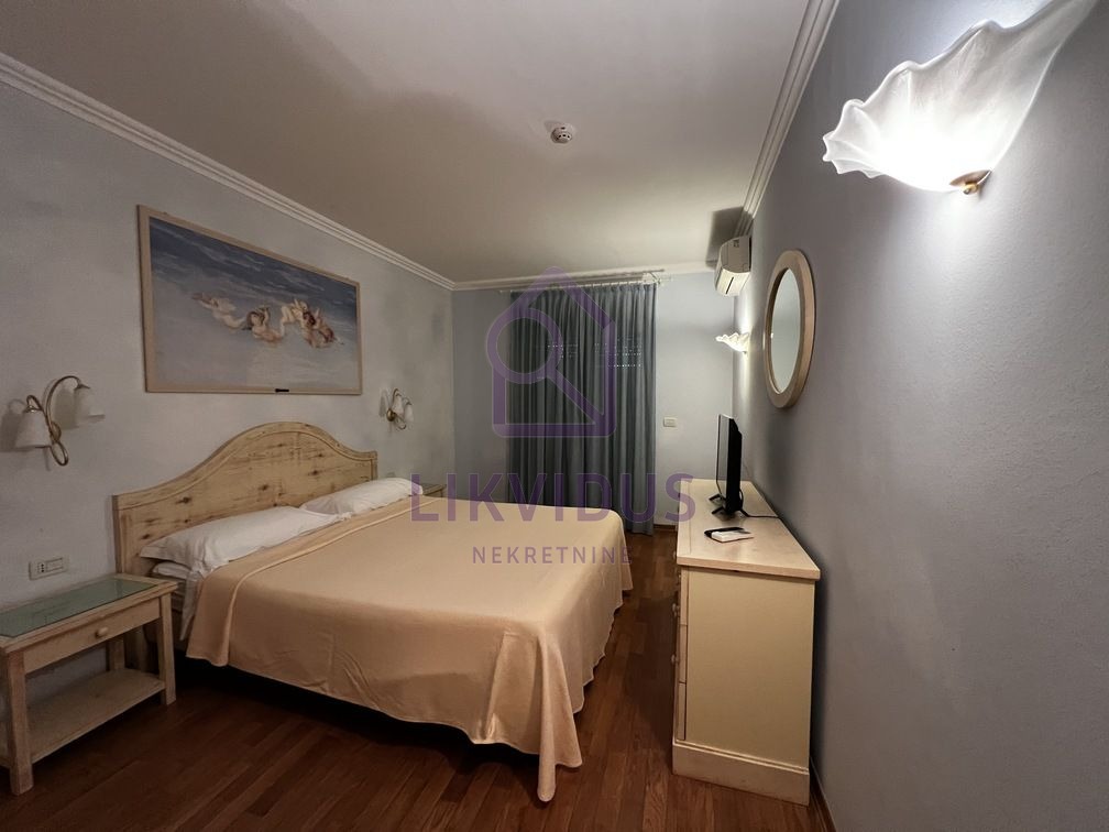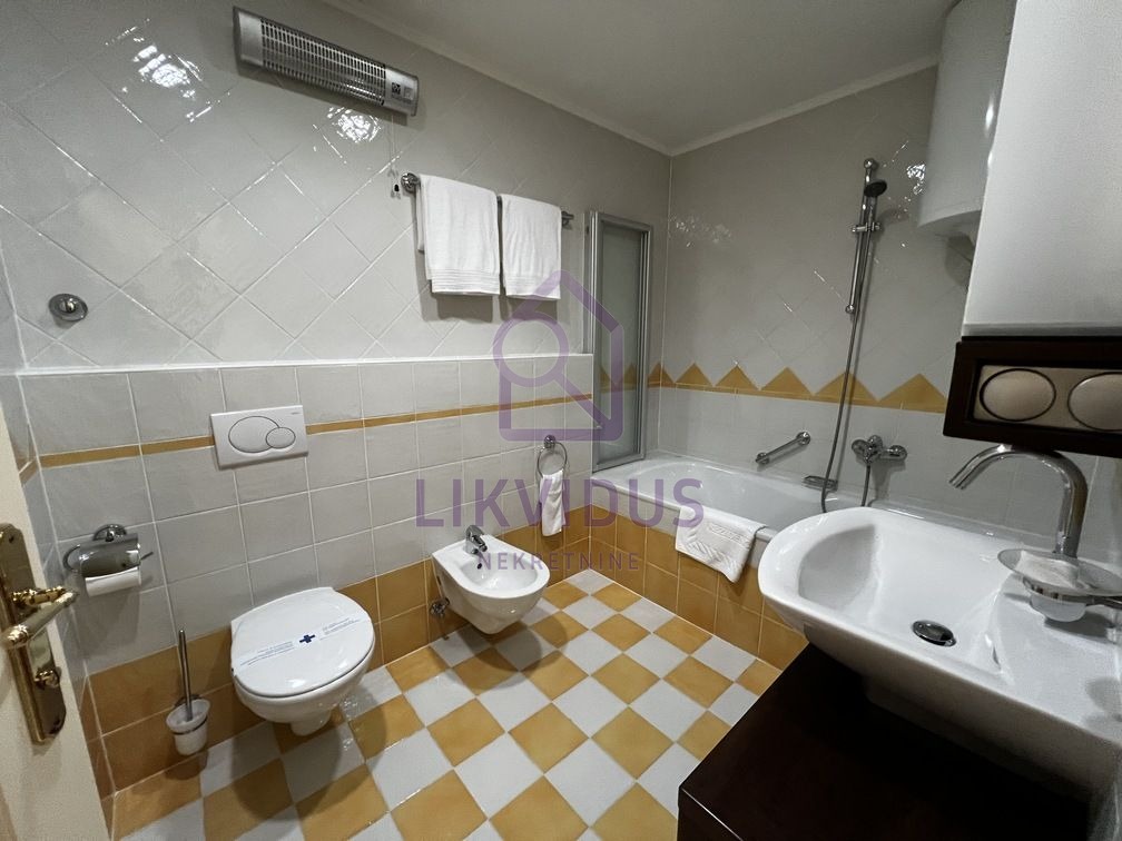 Jedan od apartmana površine je 120,65 m2, a sastoji se od spremišta u suterenu površine 7,23 m2, hodnika površine 2,60 m2, sobe površine 11,93 m2, kupatila površine 6,90 m2, sobe površine 19,49 m2, kupatila površine 4,88 m2, dnevnog boravka i kuhinje površine 46,73 m2, natkrivene terase površine 15,93 m2, terase površine 4,96m2. Moguće je uz stan kupiti i parking ili garažu.