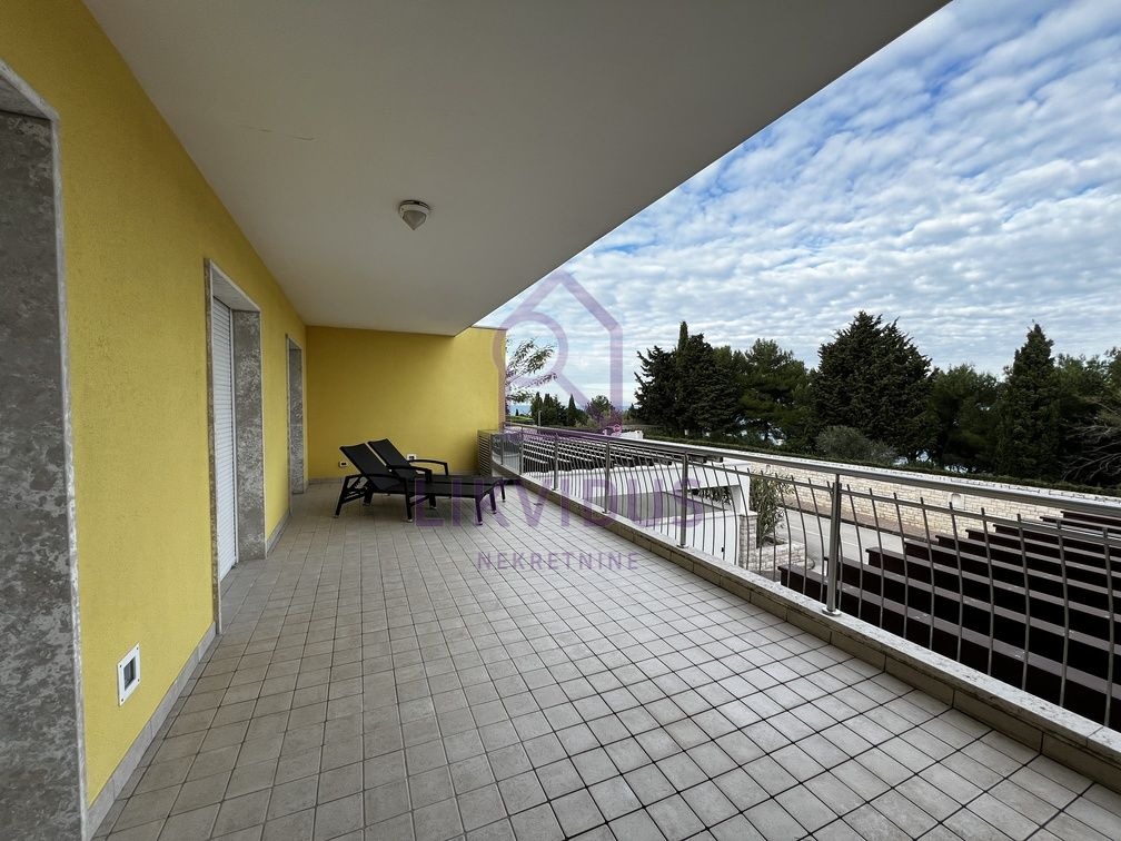 Jedan od apartmana površine je 132,97 m2, a sastoji se od spremišta u suterenu površine 4,76m2, dnevnog boravka i kuhinje površine 40,68 m2, kupatila površine 5,42 m2, kupatila površine 5,88 m2, hodnika površine 3,57 m2, sobe površine 19,80 m2, sobe površine 14,34m2, natkrivene terase površine 27,75 m2 i terase površine 10,77 m2. Moguće je uz stan kupiti i parking ili garažu.