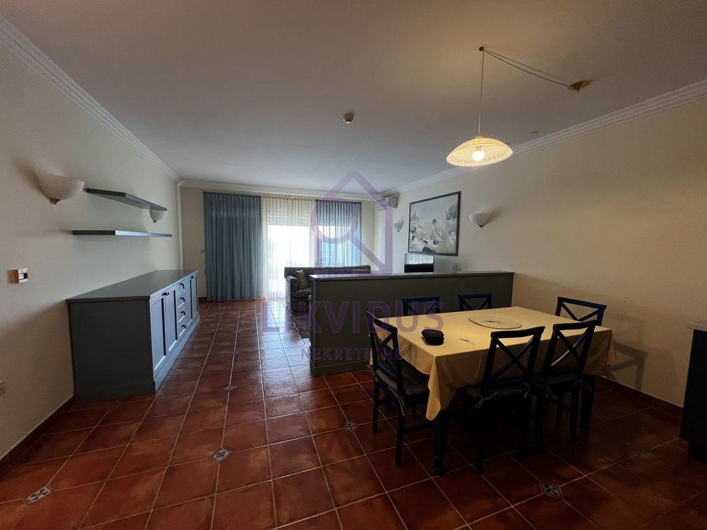Jedan od apartmana površine je 116,56 m2, a sastoji se od spremišta u suterenu površine 4,80 m2, hodnika površina 3,09 m2, wc-a površine 2,22 m2, kupatila površine 7,19 m2, sobe površine 17,88 m2, sobe površine 12,34 m2, kupatila površine 4,98m2, dnevnog boravka i kuhinje površine 42,79 m2, natkrivene terase površina 16,22 m2, terase površine 5,05 m2. Moguće je uz stan kupiti i parking ili garažu.