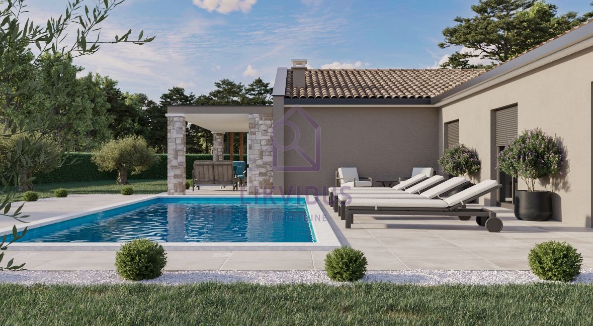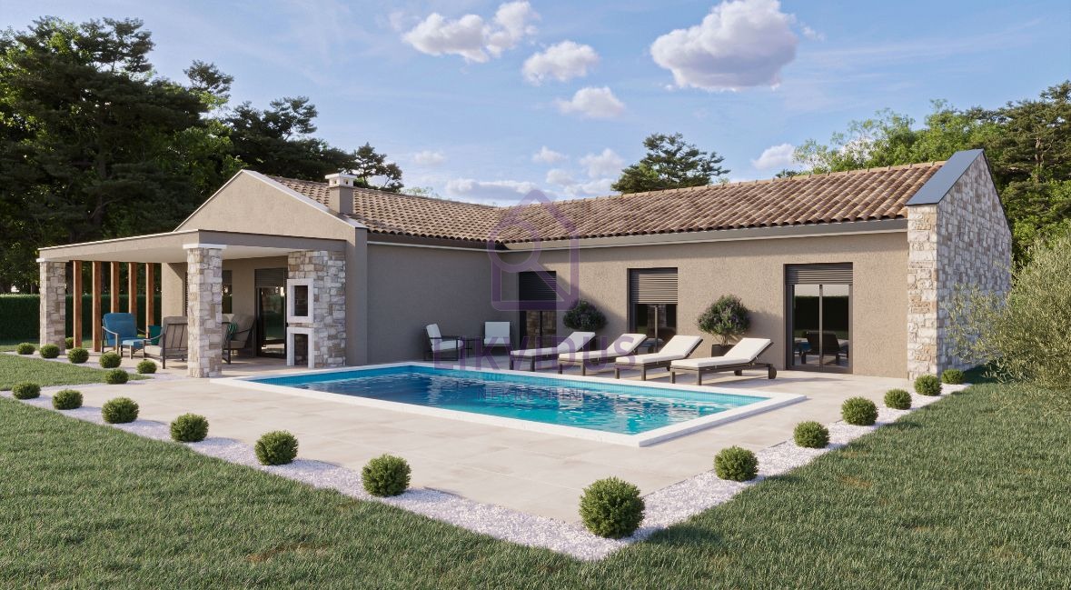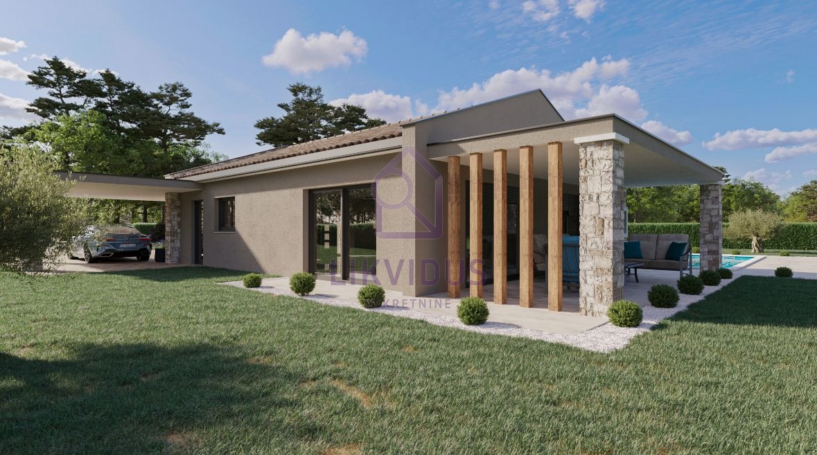 Površina zemljišta iznosi 1.450 m2, na rubu je sela. Bruto površina prizemnice iznosi 251,67 m2, a uz dnevni boravak i kuhinju predviđene su 3 spavaće sobe, 2 kupaonice, 1 wc i velika vanjska terasa. Savršeno za gradnju kuće za odmor ili obiteljske kuće.