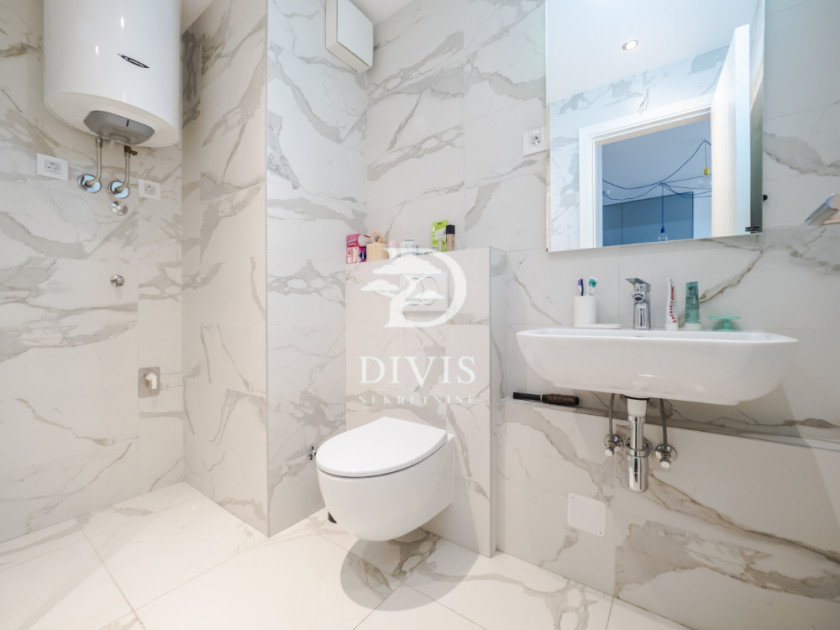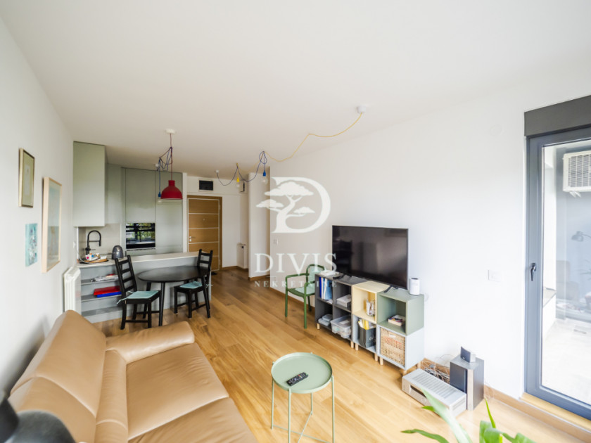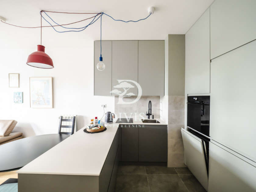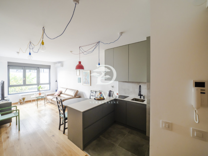 Prostor je funkcionalno organizovan, sa dnevnim boravkom i kuhinjom u otvorenom konceptu, spavaćom sobom, kupatilom i terasom na koju se izlazi iz dnevne sobe. U stanu ostaje samo ugradna kuhinja sa kompletnom belom tehnikom što je idealno za nekoga ko želi da prostor uredi po svom ukusu, bez potrebe za velikim početnim ulaganjima.