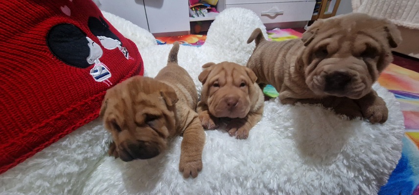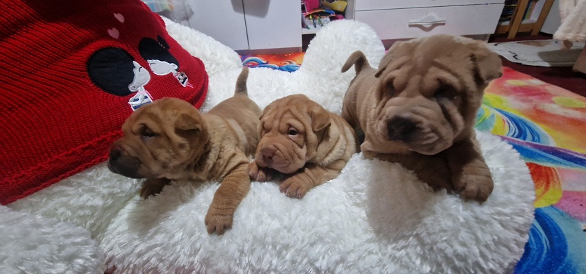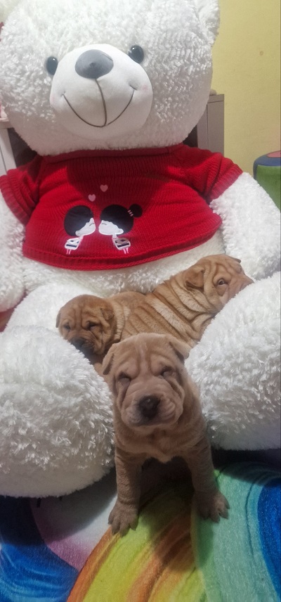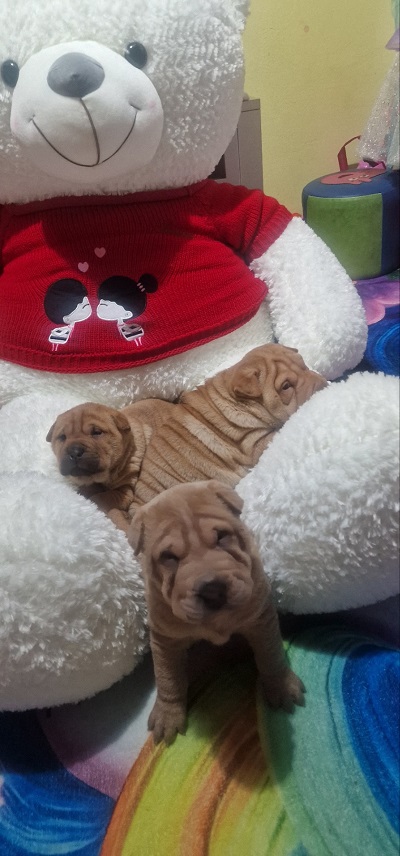 Opis: Čisrokrvni štenci šar peja. Mama i tata u vlasništvu. Oštenjeni 2.10. Jedan dečak i 2 devojčice.