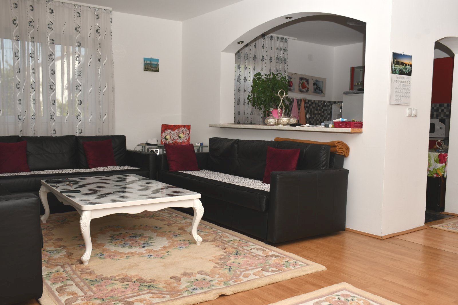 prizemlje koje sacinjava veliki dnevni boravak, kuhinja, trpezarija, kupatilo; prvi sprat je povezan unutrasnjim stepenistem na kome se nalaze tri spavace sobe, kupatilo, dve velike terase; takodje je potkrovlje povezano unutrasnjim stepenistem i sacinjavaju ga tri spavace sobe, kupatilo.