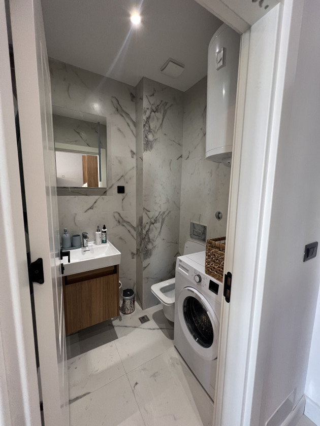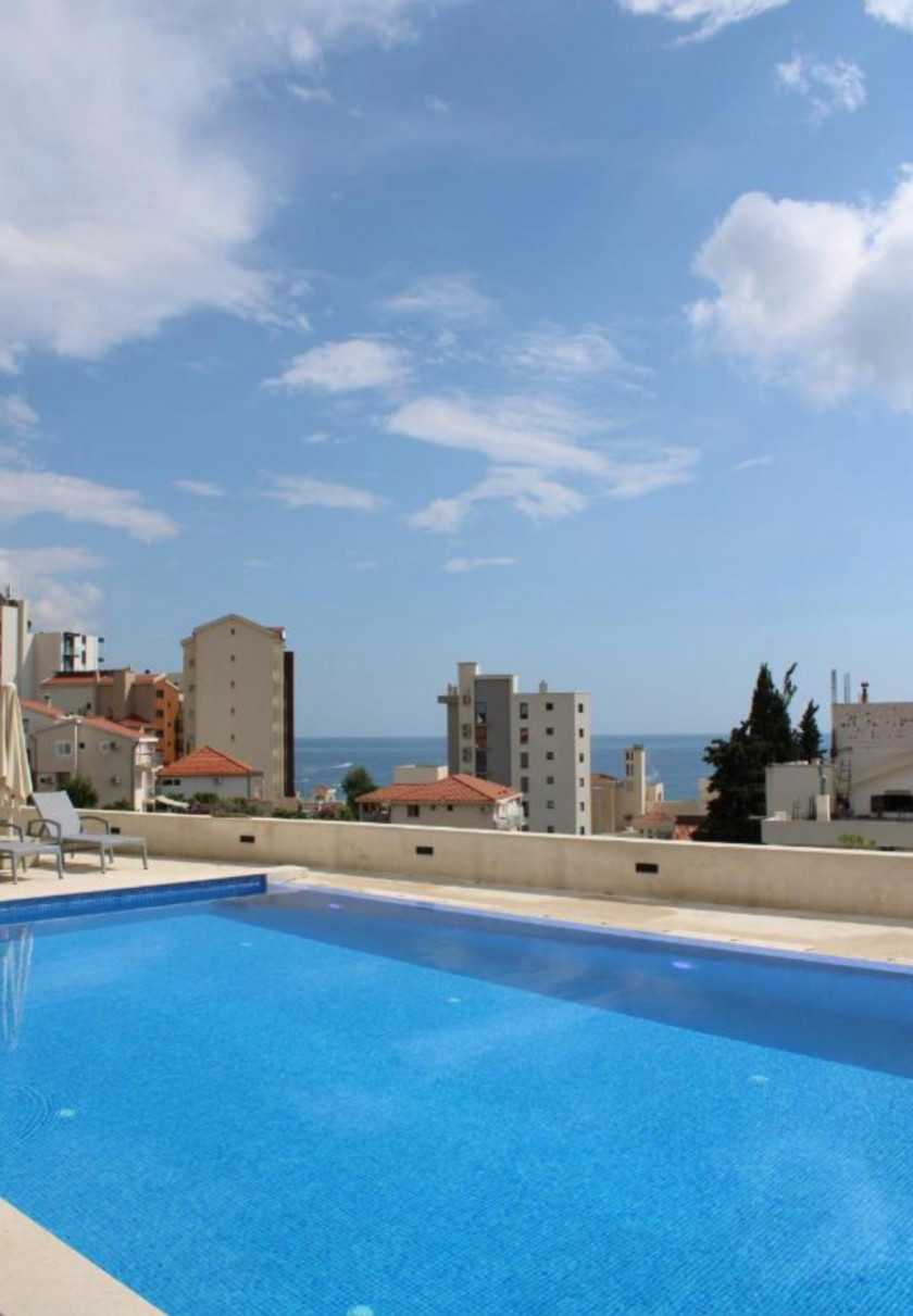 Opis: Izdajem 39m2 stan na duže u Bečićima. Zgrada ima lift, bazen i teretanu i garažno mjesto. Pogled na more. 750€