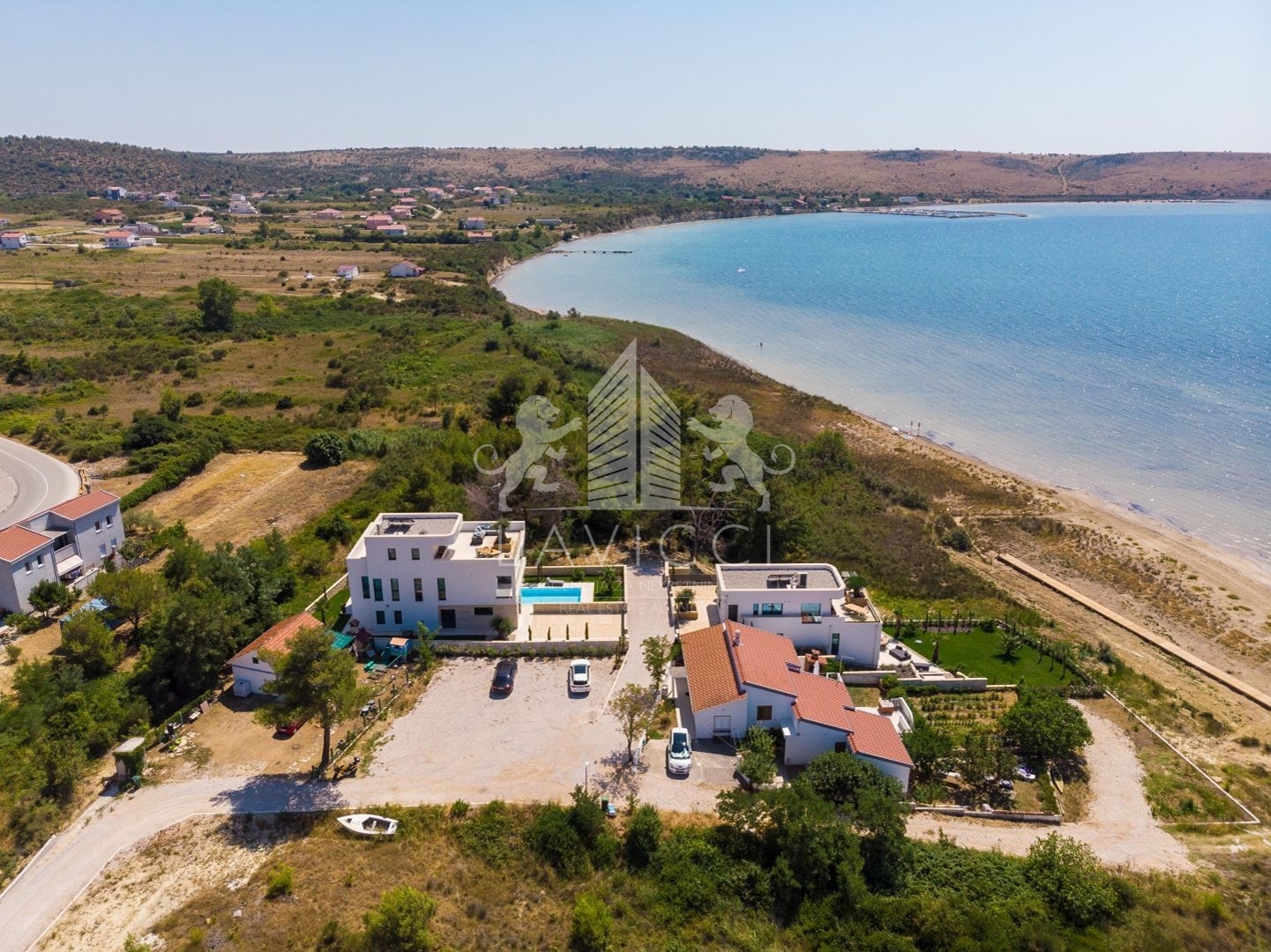 Ispred kuće nalaze se dvije velike nenatkrivene terase s roštiljem, te zelena površina na kojoj je moguće postaviti bazen ili drugi dodatni sadržaj koji će pridonijeti kvaliteti života novih vlasnika. Također, postoji izlaz koji vodi odmah na prekrasnu pješčanu plažu i more.