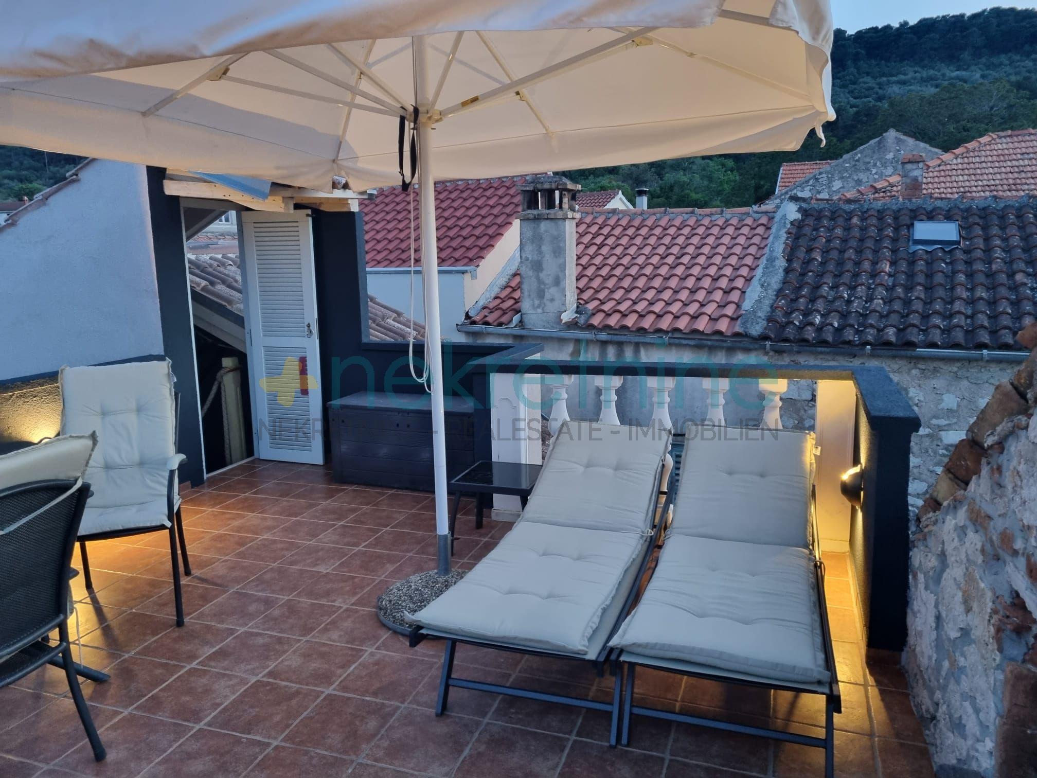 OPREMLJENOST I RENOVACIJA:Kuća je u potpunosti renovirana i namještena visokokvalitetnim namještajem, prilagođenim mediteranskom stilu. Zidovi debljine 70-100 cm izrađeni su od bijelog kamena, a nova drvena stolarija opremljena je komarnicima.
