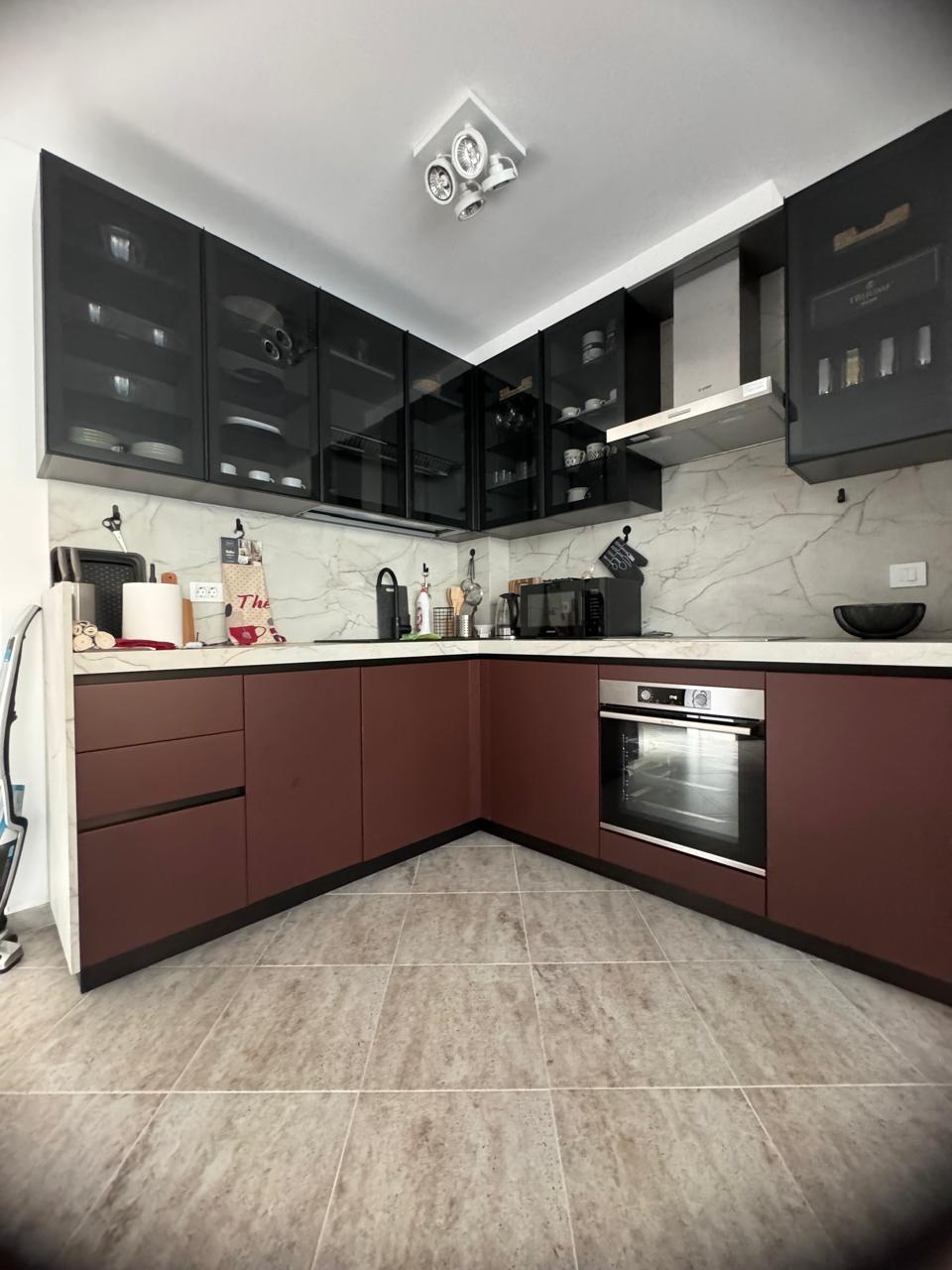 ✅Prizemlje: prostrana dnevna soba sa pristupom terasi i pogledom na bazen, moderna kuhinja sa kompletnim kompletom kućnih aparata, uključujući mašinu za pranje sudova i toalet za goste.