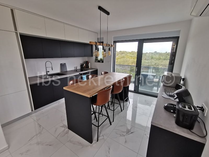 Stan se prodaje opremljen vrhunskom keramikom i sanitarijama, klimama u svakoj prostoriji, protuprovalno-požarnim vratima,visokokvalitenim prozorima, kliznim stijekama sa roletama na elektronski pogon i pobno biranim modernim namještajem.
