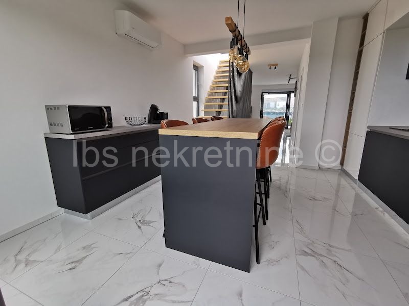 Sa zasebnim ulazom stan se proteže na prvi i drugi kat te krovnu terasu.