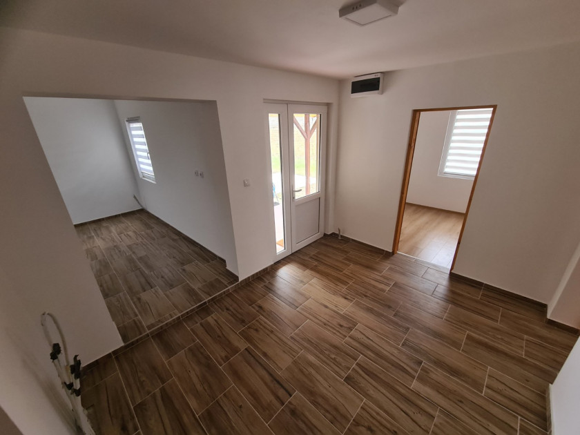 Opis: Predstavljam vam porodicnu kucu u Kovacici u mirnoj ulici, blizu glavnog puta,( 100m od autobuskog stajalista) a opet skrivenu od centra desavanja. Kuca kao i svi pomocni objekti su zidanu cvrstim materialom. Kuca od 105m²+20m² podrum na 11ari placa sastoji se od 3 sobe, kuhinja sa trpezarijom, predsoblje, kupatilo i mala terasa. Ispod kuhinje i trpezarije nalazi se podrum. Kuca je kompletno renovirana svuda je ugradjena nova pvc stolatija, postavljena nova sobna vrata, ugradjeni su novi laminatu u 3 sobe kao i nova keramika u kupatilo predsoblje i kuhinju. Razvucena kompletno nova elek.instalacija, novi dovod vode do kupatila i kuhinje kao i odvod u novo sagradjenu septicku jamu. Razvucene cevi po svim prostorijama za centralno grejanje i ugradjen novi prohromski odzak, spremno za ugradnju radiatora i peci. Kuca je spolja malterisana i do ulice izbetoniran prilaz. U dvoristu ima 2 pomocna objekta kao i vocnjak od dvadesetak sadnica. Uknjizena, svojina 1/1 vlasnik.Kontakt: 061/183-94-74