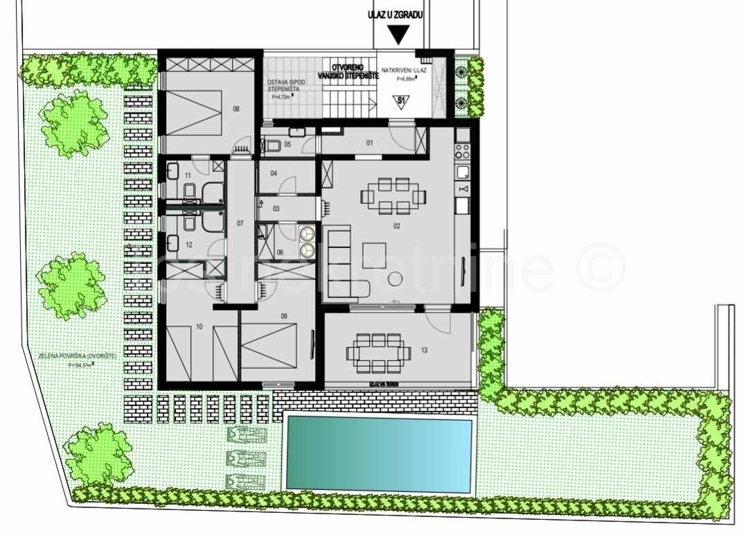 Lokacija zgrade je na iznimno atraktivnoj poziciji, ispod magistrale i poviše stare kaštelanske ceste.
