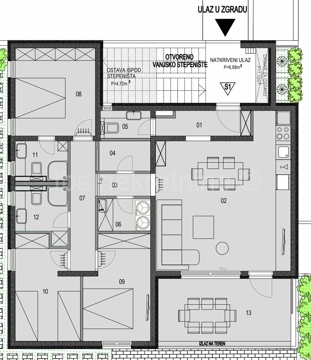 U blizini zgrade se nalaze svi potrebni sadržaji za življenje, a stan je idealan za obiteljski život, ali i za turistički najam.
