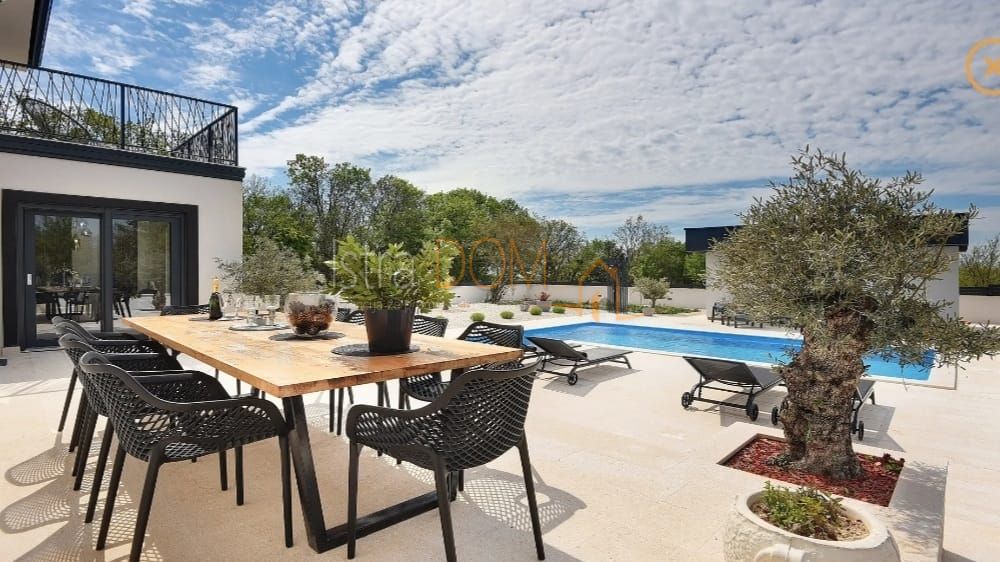 Opis: Prodaje se prelijepa nova samostojeća kuća sa bazenom u mjestu Krnica. Smještena je na okućnici od 750 m2 i proteže se na prizemlje i kat.