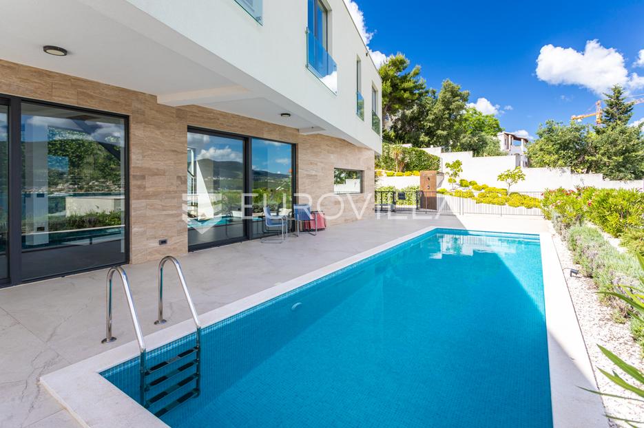 Opis: Luksuzan, suvremen kompleks koji čini osam moderno dizajniranih vila poželjnih karakteristika. Okružene čistim Jadranskim morem i zelenilom otoka Čiova, idealna su investicija za svakog ljubitelja privatnosti i mira nedaleko od urbanog života.VILA 3Troetažna vila stambene površine 326 m2, smještena drugi red od mora. Sastoji se od velikog dnevnog boravka, potpuno opremljene kuhinje, četiri spavaće sobe, pet uređenih kupaonica, te garaže dostatne za dva automobila. Osim predivnog otvorenog pogleda na more, ovaj objekt nudi i prostrani grijani bazen smješten na terasi.Svi objekti u kompleksu imaju pristup moru, kao i mogučnost imati pristanište za brodove i manje jahte.Nadalje, svi objekti su opremljene grijani bazenom, garažom i potpuno su klimatizirani.Prodaju se po sistemu "ključ u ruke", s potpuno opremljenim kuhinjama i kupaonicama, a tijekom gradnje korišteni su isključivo visokokvalitetni materijali i oprema; podovi su obloženi modernim keramičkim pločicama velikog formata, kao i parketima, ugrađene su sanitarije vrhunske kvalitete, troslojna stakla renomiranih proizvođača, elektične rolete i sl.Za sva ostala pitanja, stojim na raspolaganju....