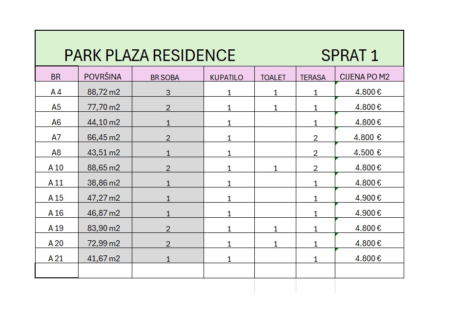 Opis: Predstavljamo Vam novi stambeno-poslovni objekat Park Plaza Residence, čija gradnja je započela na glavnom Bulevaru u Budvi, na samo 450 m od mora i 1,7km od Starog grada, 9 km od čuvenog Sv Stefana i 24km od aerodroma Tivat.