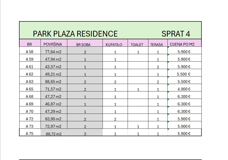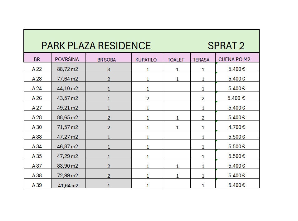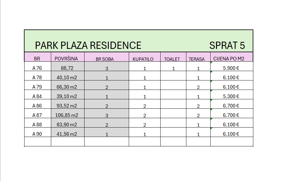 U ponudi su stanovi sa 1, 2 i 3 spavaće sobe i kvadrature od 39m2 do 107m2.