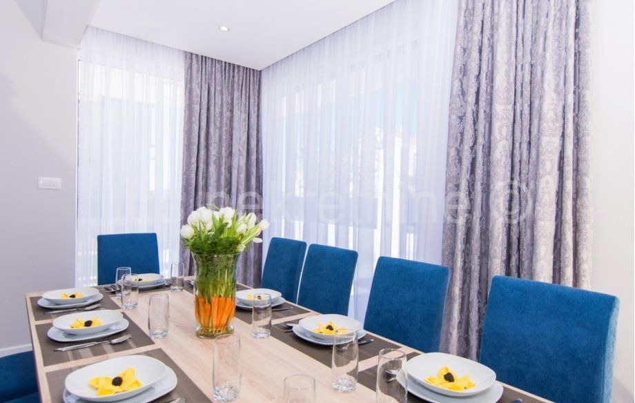 Prizemne etaže se sastoje od predsoblja, kuhinje, dnevnog boravka, blagovaonice s izlazom na natkrivenu terasu, sobe i kupaonice dok se na katu svake ville nalaze četri sobe i četri kupatila.