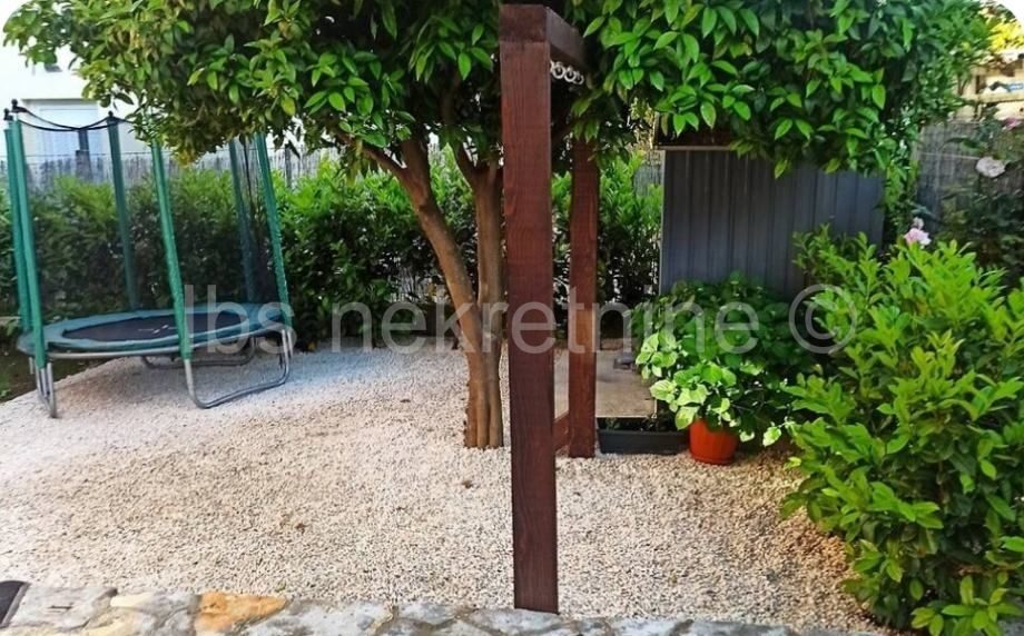 Kuća prizemnica od 122, 70 m2 upotpunosti namještena i opremljena sastoji se od verande, hodnika, dvije kupaonice, tri spavaće sobe, dnevnog boravka, blagovaonice i kuhinje.Uz kuću se nalazi bazen te vanjska natkrivena terasa sa roštiljom što ovaj prostor čini idealnim za opuštanje.Dvorište je u potpunosti ograđeno,a ima i vlastiti parking za 2-3 automobila.Kuća je renovirana 2020 god. od tada je služila isključivo za sezonsko iznajmljivanje.