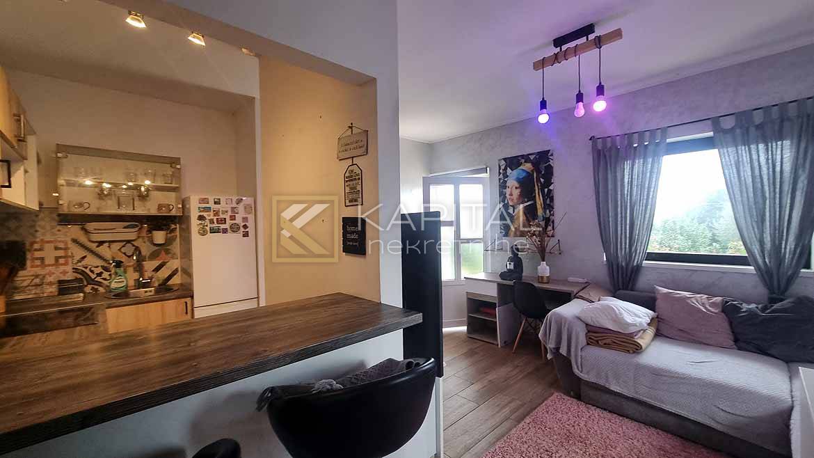 Opis: Opatija - Ika stan površine 90 m2 koji je u naravi podijeljen u dvije stambene jedinice i funkcionira kao dva komforna 1S+DB s posebnim ulazima. Stan ima velike terase, bazen te okućnicu od 450 m2 - otvoren pogled na more.