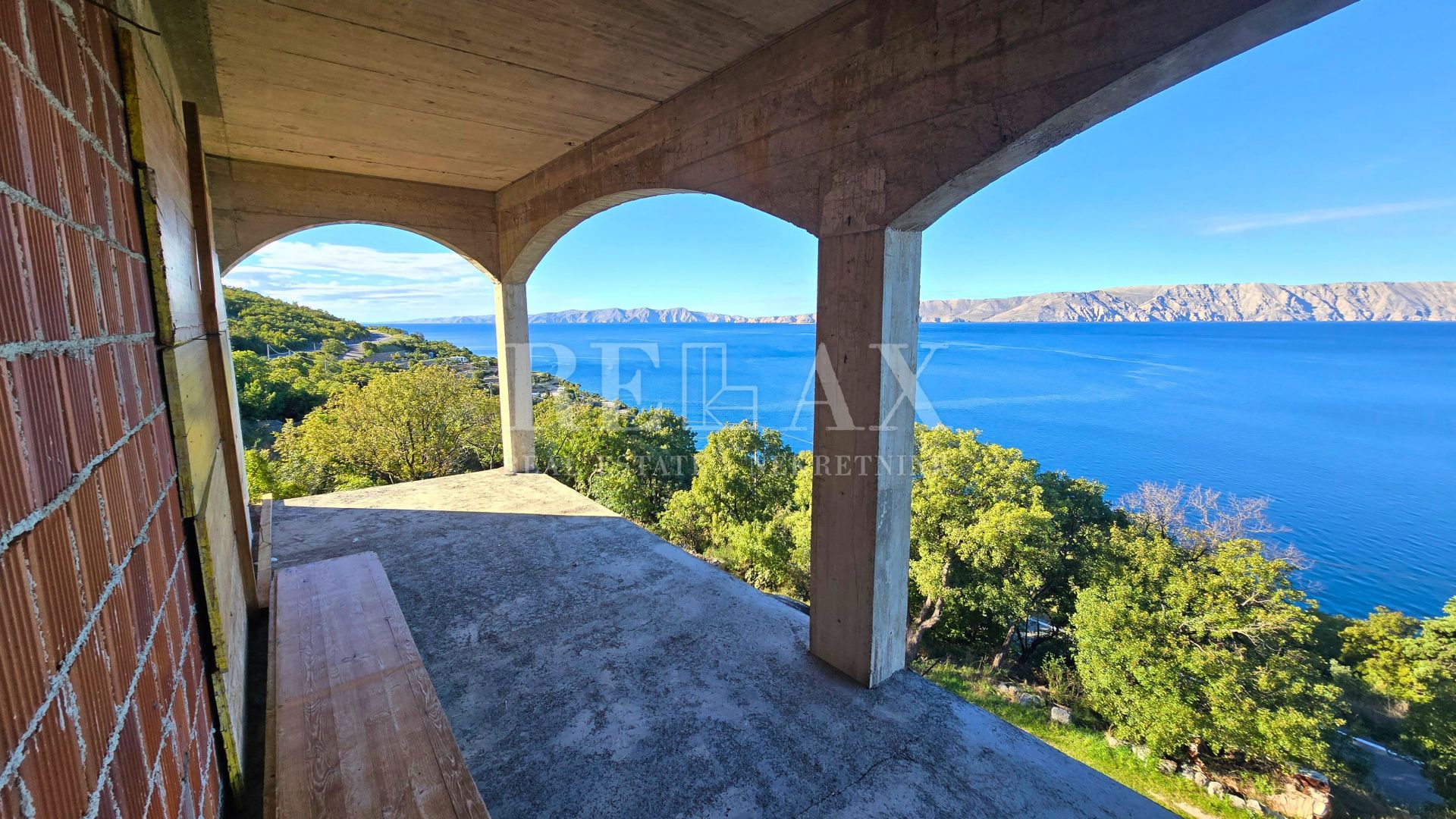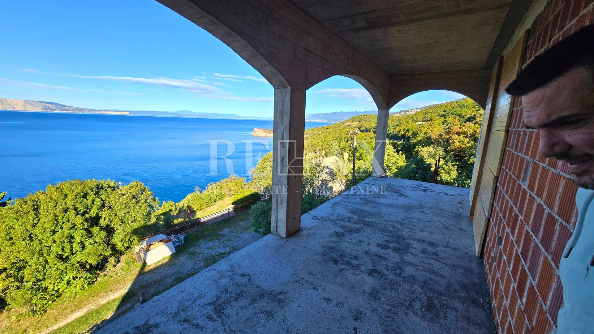 Opis: U mirnom i slikovitom mjestu Sibinj Krmpotski, smještena u prvom redu do mora, nalazi se ova započeta gradnja kuće koja se prostire na impresivnih 300 m2 stambenog prostora, sa okućnicom od 1 950,20 m2. Kuća se sastoji od visokog prizemlja i kata, a cijela nekretnina pozicionirana je tako da pruža spektakularan, neometan panoramski pogled na more, čime se dodatno naglašava njezina iznimna vrijednost.