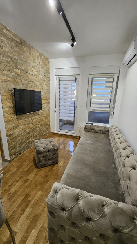 Stan je funkcionalan i kompaktan. Open-space koncept povezuje dnevni boravak, trpezariju i kuhinju.Opremljen tv uređajem. Svetle nijanse zidova, pametno postavljeni svetlosni izvori i moderni detalji doprinose estetici stana.