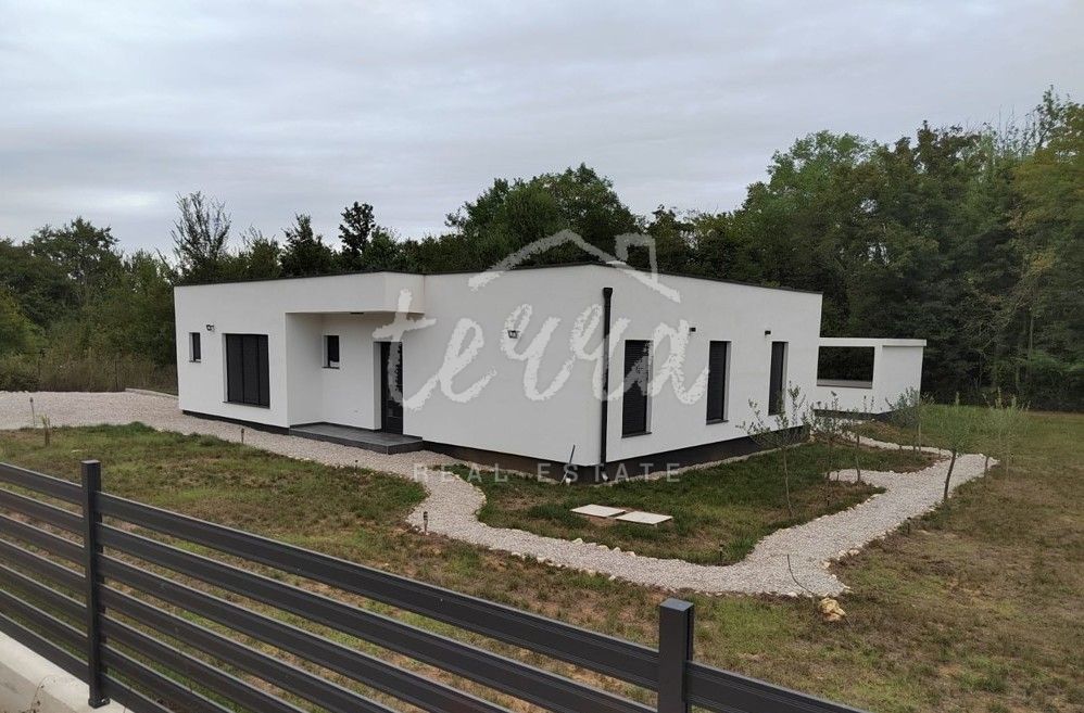 Ova lijepa prizemnica novogradnja površine 125m2 na prostranom zemljištu od 1450m2 nalazi se u