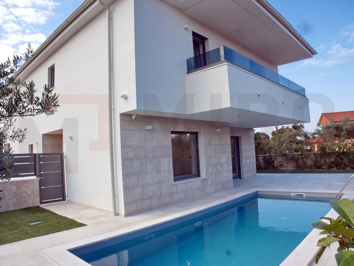 Opis: Otok Krk, Malinska, prodaje se moderana dvojna kuća s privatnim bazenom, smještena u mirnom dijelu okolice Malinske, nedaleko od mora. Nova dvojna kuća ukupne stambene površine od 111 m2. Prizemlje se sastoji od natkrivenog ulaza koji vodi u hodnik, a tu su i wc te ostava. Središnji dio prizemlja čini otvoreni prostor u kojem se nalaze kuhinja, blagovaonica i dnevni boravak s izlazom na natkrivenu terasu. Terasa vodi prema bazenu površine 21 m2. Unutarnje stepenice vode na prvi kat, gdje su smještene tri spavaće sobe. Master spavaća soba ima vlastitu kupaonicu i izlaz na natkrivenu terasu. Kvalitetna gradnja i oprema: podno grijanje (Vaillant dizalica topline), klima uređaji (Toshiba), električne rolete, grijani bazen s elektrolizom. Dva parkirna mjesta. Završetak gradnje planiran je za kraj 2025. Nekretnina je u sustavu PDV-a i kupac ne plaća porez na promet nekretnina. Prodavatelj jamči čistu vlasničku dokumentaciju zemljišta. Posjetite nas i pronađite kvadrat vašeg doma!