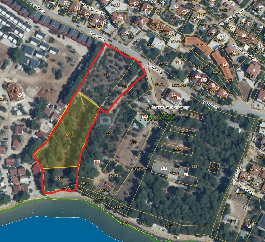 Opis: Iznimno atraktivna lokacija obzirom da je zadnje zemljište tom namjenom unutar mjesta.Nekretnina je jedinstvena u Pirovcu jer se zemljište nalazi uz glavnu, javnu plažu Lolić (Podravka) te se rasteže od Zagrebačke ulice uz zemljište hotela Miran do same plaže.Zemljište ima priključak za vodu te sva ostala potrebna infrastruktura se nalazi u blizini (struja, telefon, ...)Pogodna za kućice za odmor obzirom da je Pirovac prijavljen za razvoj kanalizacije putem sufinanciranja sa EU projekta tako da se uskoro iščekuje potvrda o prihvaćanju projekta. To budućem investitoru omogućava sufinanciranje razvoja i izgradnje zemljišta isto putem EU sredstava.Zemljište se sastoji od četiri parcele no kupnja pojedinačnih parcela NIJE moguća.Na zemljištu se trenutno nalaze još dvadesetak maslina.Izdvojenog građevinskog područja ugostiteljsko turističke namjene (izvan naselja) Platine (T1 i T3) i zona rekreacije“ što znači da se nalaze u građevinskom području, ali da se može graditi po posebnim uvjetima.Cijena iznosi 300 EUR/m².