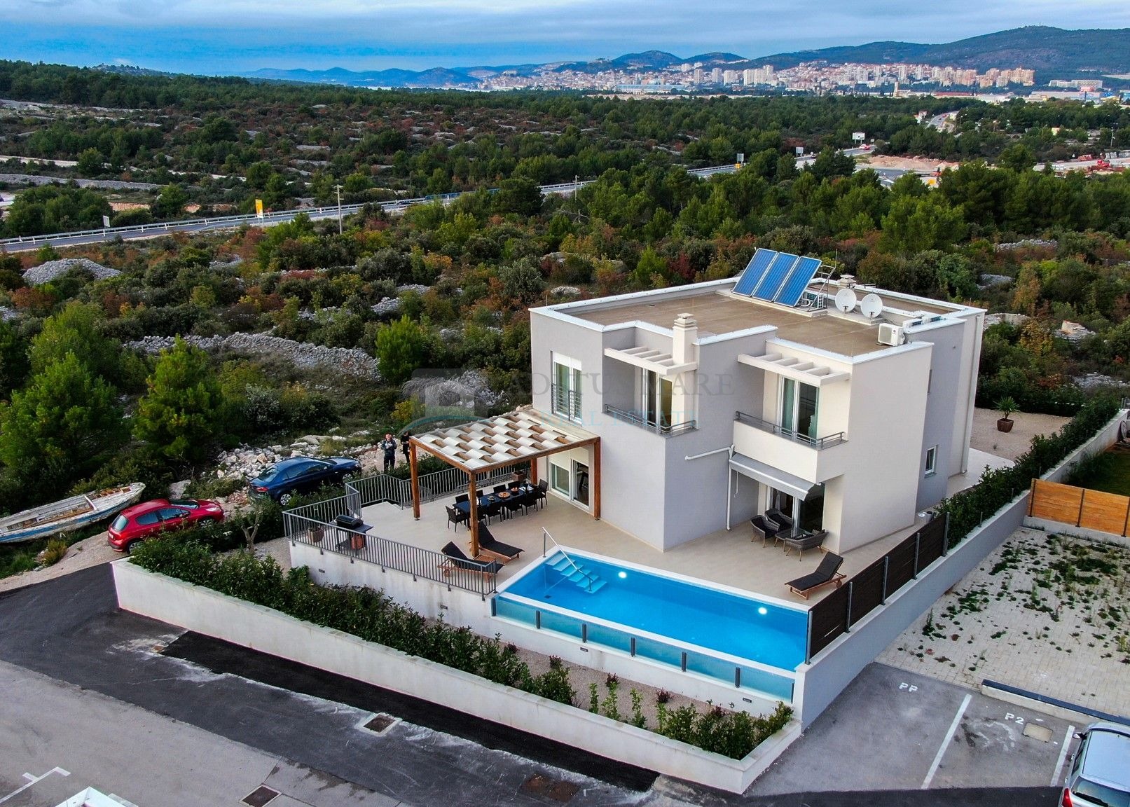 Na jednoj od najboljih mikrolokacija u Brodarici, svega nekoliko minuta od Šibenika, prodaje se moderna urbana vila ukupne neto korisne površine 225 m², sagrađena na tri etaže, s bazenom, tri parkirna mjesta i potpuno uređenom okućnicom.
