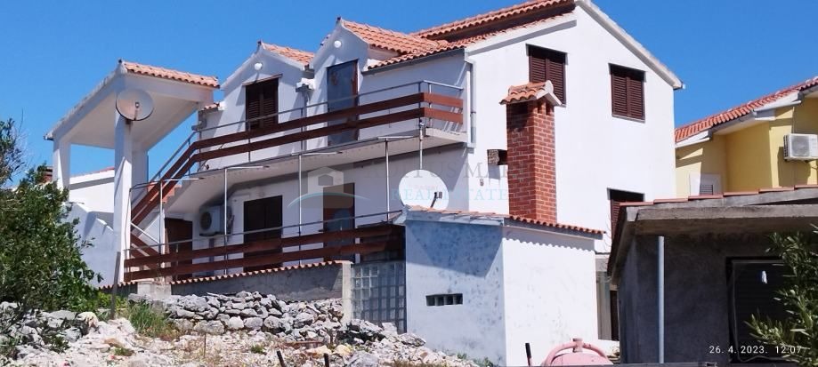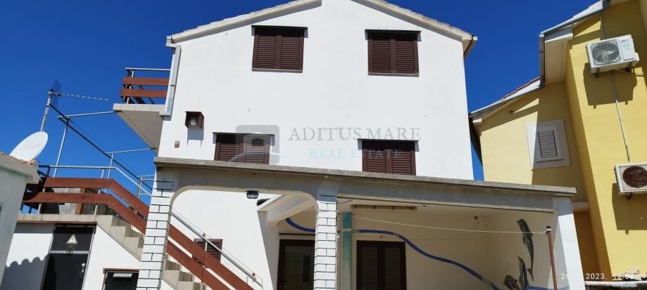 Kuća je u dobrom stanju, prizemlje bi trebalo renovirati, a prvi i drugi kat su useljivi odmah.PRIZEMLJE:Jedan apartman s niskim plafonom koji se sastoni od jedne spavaće sobe, wc s kupaonom, kuhinja, dnevni boravak.1.KAT:Dvije spavaće sobe, kupatilo i wc, kuhinja s dnevnim boravkom, terasa, ostava, PVC prozori, klima uređaj, termo peć. ODMAH USELJIVO.2.KAT:4 spavaće sobe, WC s kupaonom, terasa PVC prozori. ODMAH USELJIVO.
