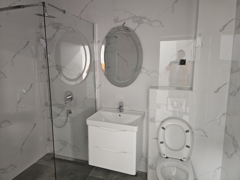 Opis: Prodaje se jednosoban stan u nove zgrade u Denovicima na 1om spratu povrsine od 50 m2. Sa balkona se pruze pogled na more.