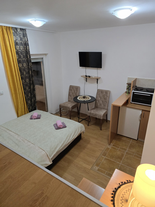 Opis: Garsonjera posjeduje terasu i parking mjesto.. pored francuskog ležaja ima još jedan lezaj