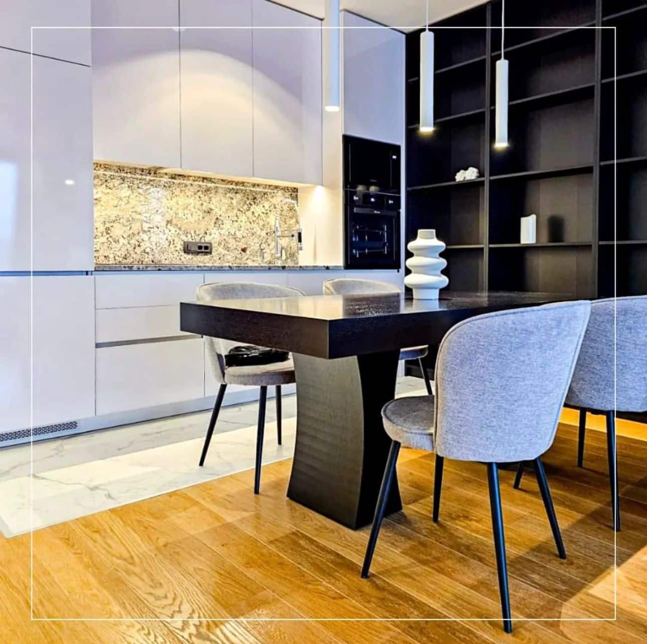 Opis: New luxury one bedroom apartment on the best location: close to Crown Plaza, Atlas Capital, best restaurants. 4th floor. It had garage.