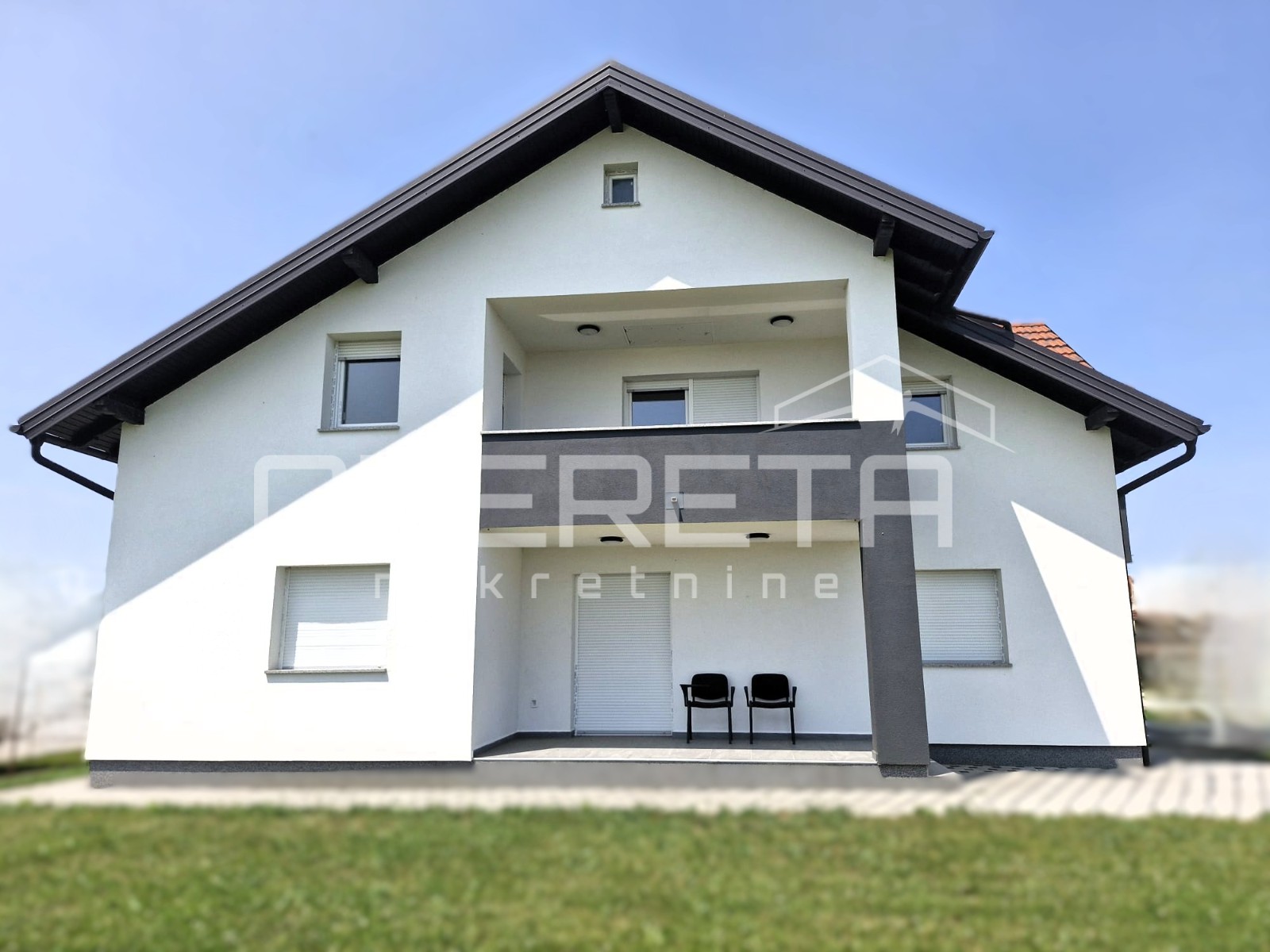 Opis: PRODAJA, KUĆA, DUGO SELO, OKUNŠČAK, 274m2, SAMOSTOJEĆA, NOVOGRADNJA, Rugvička cesta, obiteljska kuća 13.9 m X 12.1m građena na ravnom terenu, ne korištena i odmah useljiva! Sastoji od prizemlja i prvog kata;PRIZEMLJE ima ma zatvorenog prostora 118m2: hodnik, dvije spavaće sobe, kupaonica, stubište, prostrani dnevni boravak, blagovaonica, kuhinja. Također postoji i natkriveni ulaz, lođa, natkrivena i nenatkrivena terasa. PRVI KAT ima zatvorenih 120m2: stubište, otvoreni prostor dnevnog boravka, kuhinja i blagovaonica, dvije spavaće sobe. Također, ima dvije natkrivene terase, lođu i balkon. Kupaonice imaju podno grijanje, grijanje plinsko etažno i zasebno je izveden kamin na kruta goriva, termo fasada...U neposrednoj okolici su pretežno obiteljske kuće i nalaze se svi potrebni javni i društveni sadržaji, prometna povezanost odlična i na 2 min. pješice do autobusne stanice i javnog prijevoza, škola i vrtić nalaze se u krugu od 1,5 km, što je idealno za obitelji s djecom. Mirna i tiha lokacija stvara ugodnu atmosferu za opuštanje i zabavu na otvorenom....