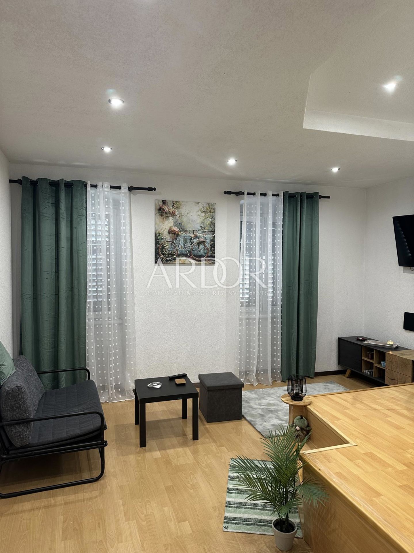 Stan je svijetao i vrlo ugodan, a sastoji se od dvije spavaće sobe, dnevnog boravka s kuhinjom i izlazom na balkon, te kupaonice. Uz stan dolazi i drvarnica, dok je na raspolaganju zajednički vrt na korištenje. Nedavno su zamijenjene električne instalacije te je ugrađena PVC stolarija, što doprinosi boljoj energetskoj učinkovitosti i smanjenju troškova; grijanje je na radijatore. Stan se prodaje potpuno namješten a vlasništvo je čisto.