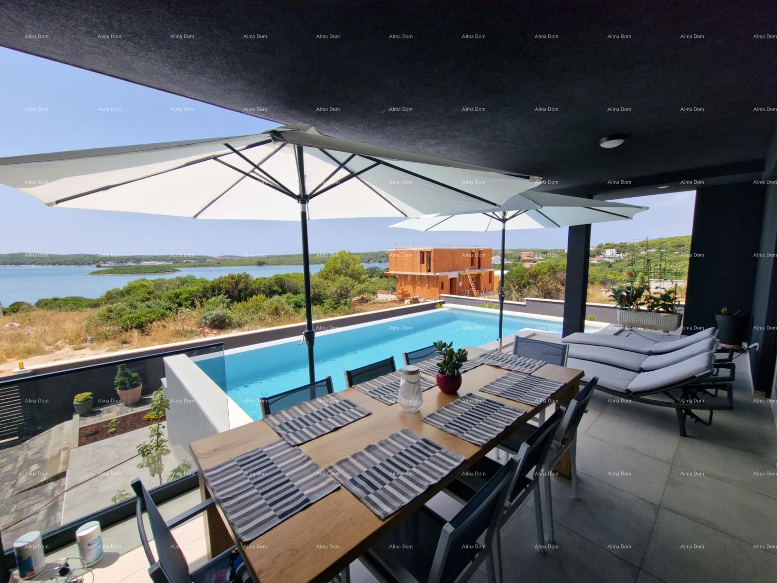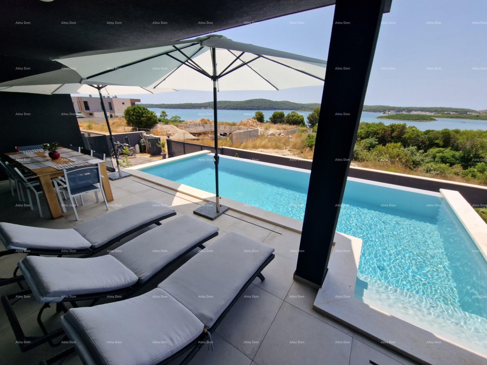 Na prodaju moderna vila u Medulinu, udaljena samo 100 metara od mora i 1 km od centra mjesta. Nekretnina je građena vrhunskim materijalima i nudi maksimalnu udobnost tijekom cijele godine.