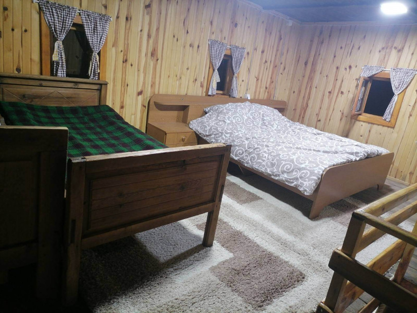 Na spratu brvnare smešten je udoban francuski ležaj, dva odvojena single kreveta, klima uređaj, dve vitrine i tri manja prozora sa drvenim kapcima koji prostoru daju poseban šarm i toplinu. Objekat raspolaže sa ukupno šest spavaćih mesta, te je idealan za porodice, manje grupe prijatelja ili parove koji žele više prostora i privatnosti.