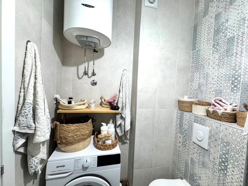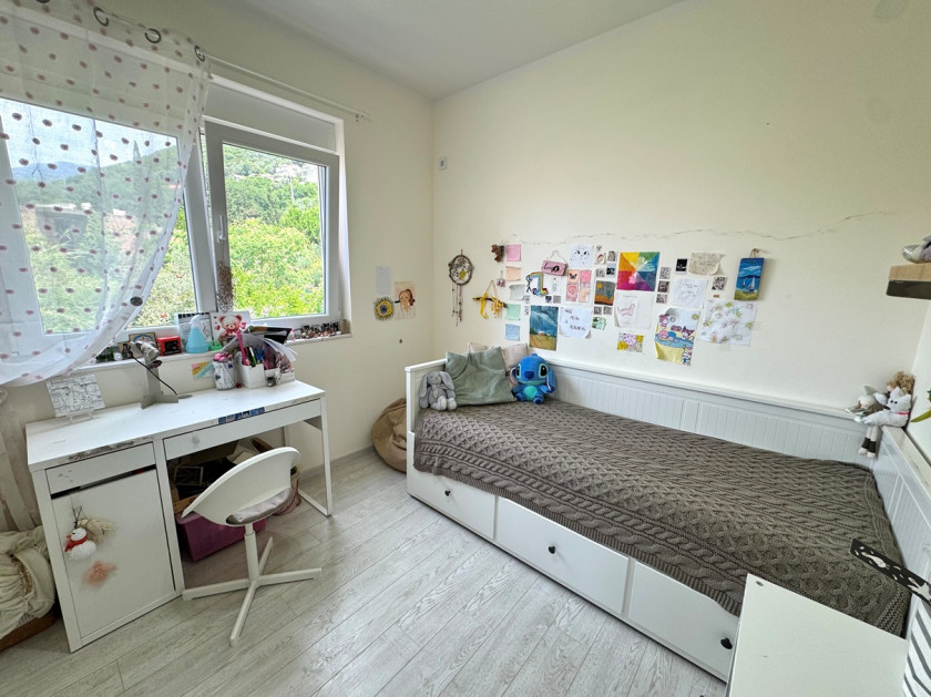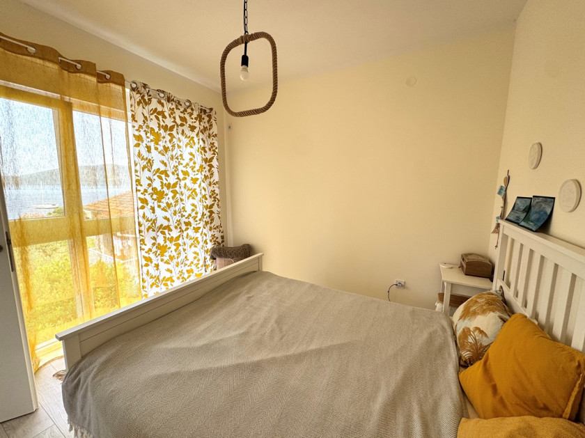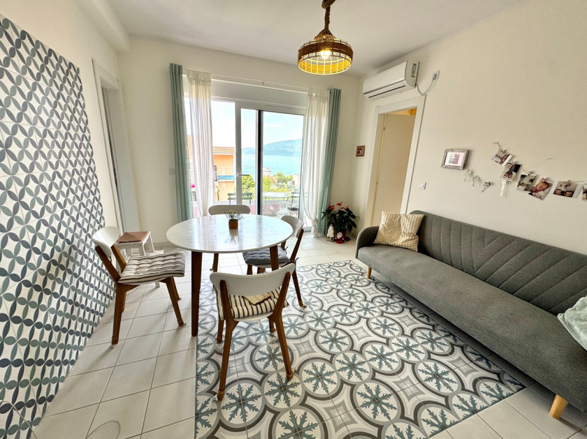 Opis: Prodaje se svijetao, ugodan dvosoban stan 47 m2 u blizini mora. Struktura: ulazni hol, dnevni boravak, dvije spavaće sobe, kuhinja, kupatilo sa tušem i terasa sa djelimičnim pogledom na more. Moguća je kupovina parking mjesta. Prodaje se sa namještajem i aparatima. Dnevni boravak i kupatilo imaju podno grijanje. Kuća je izgrađena 2022. godine prema savremenim standardima seizmičke otpornosti, izolovana, opremljena ventilacijom, zahvaljujući kojoj je stan uvijek topao i suh. Zatvoreno sigurno područje. Dvorište je mirno i zeleno. 40 metara do mora. U blizini se nalazi Jadranska škola, kafići, trgovine i restorani. Portonovi je udaljen 11-15 minuta hoda.