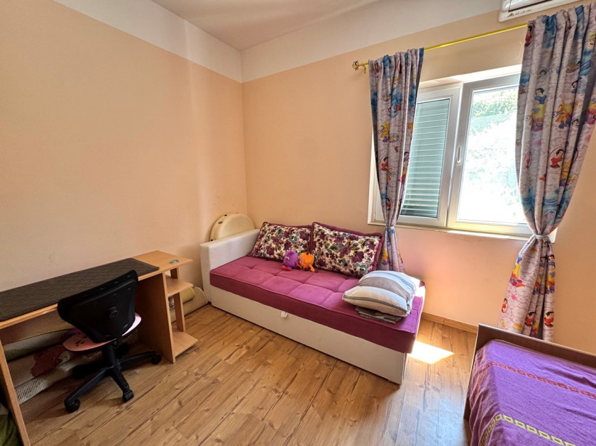 Opis: Prodaje se prostran dvoetažni stan od 120 m2 u blizini mora. Moderna topla kuća. U prizemlju: ulazni hol, veliki dnevni boravak sa kuhinjom, kupatilo sa tušem, zasebna soba; Na drugom spratu: tri spavaće sobe, terasa, kupatilo. Odličan namještaj, kućanski aparati, kamin. U cijenu je uključena parcela od 89 m2, sjenica od 38 m2, terasa ispred nje i natkriveni parking za 3 automobila. Mirno mjesto. 200 metara do mora. Porto Novi je udaljen 250 metara. U blizini se nalaze kafići, restorani, trgovine, SPA kompleks, teretana, vez za jahte i sva razvijena infrastruktura luksuznog kompleksa PortoNovi.