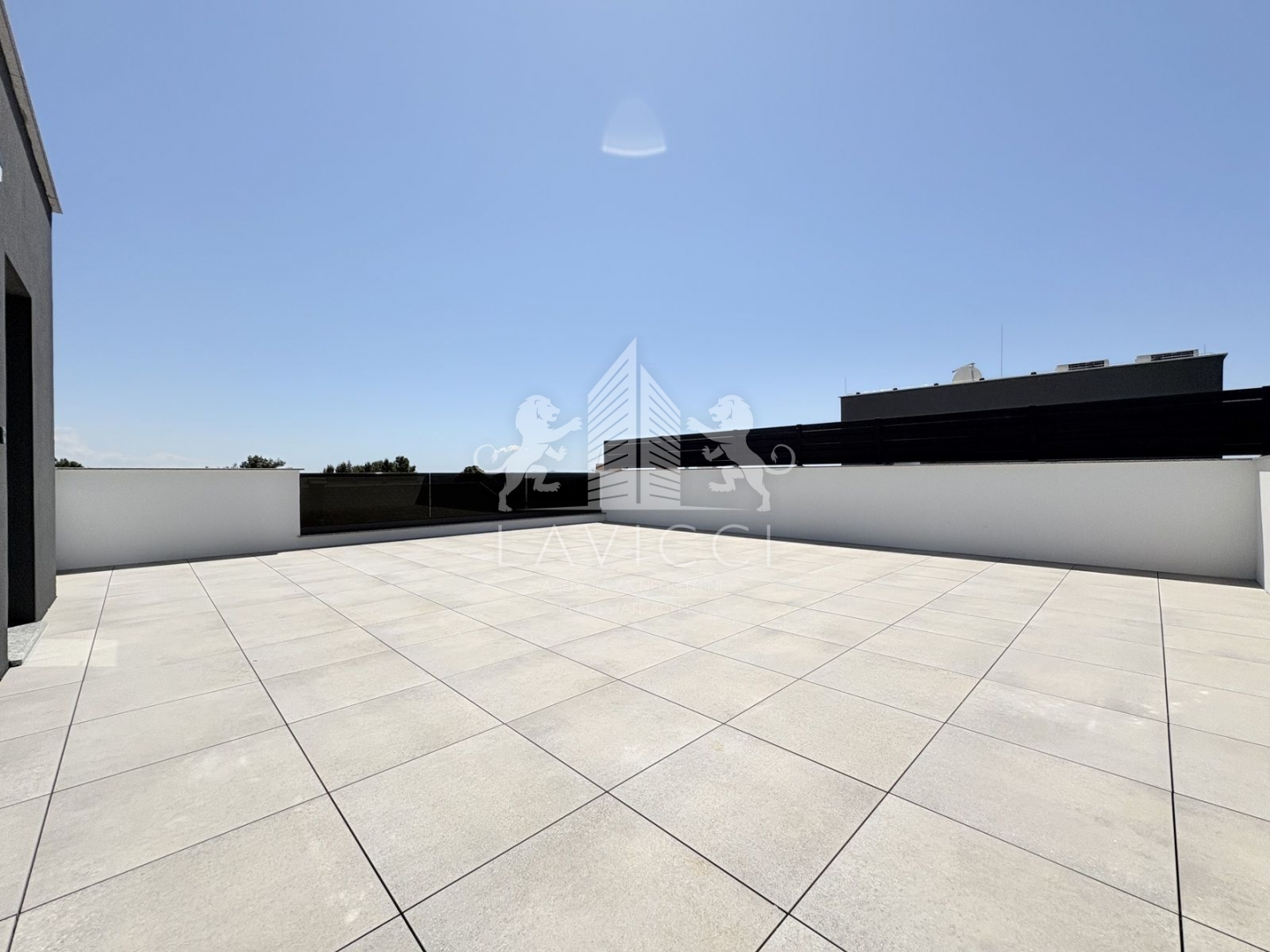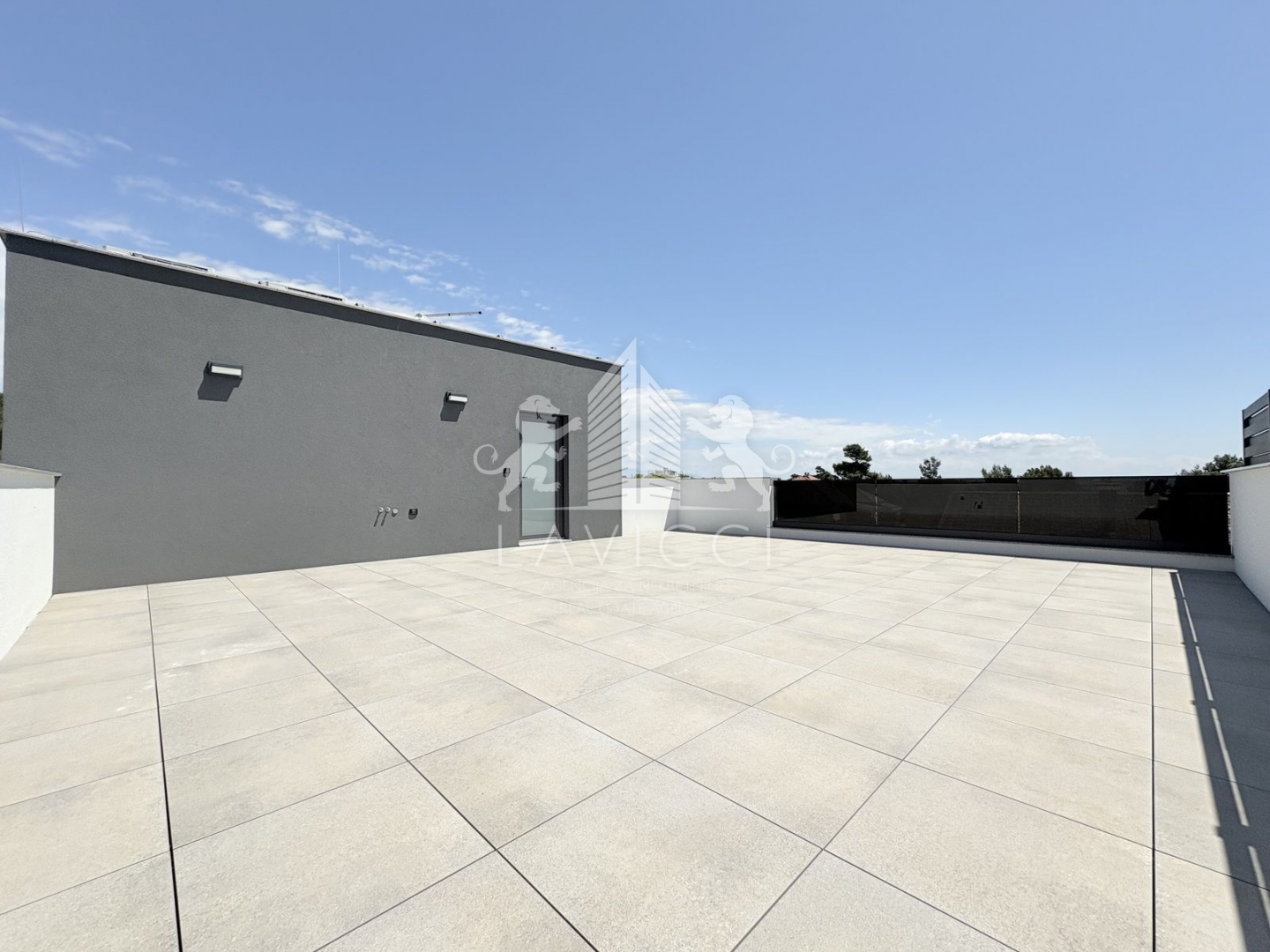 Apartmanu pripada krovna terasa ukupne površine 65 m2 s izvedenim instalacijama vode, odvoda i struje na koju je moguće postaviti ljetnu kuhinju, roštilj i jacuzzi kako bi budući stanari mogli uživati u prekrasnim ljetnim večerima na svježem zraku.