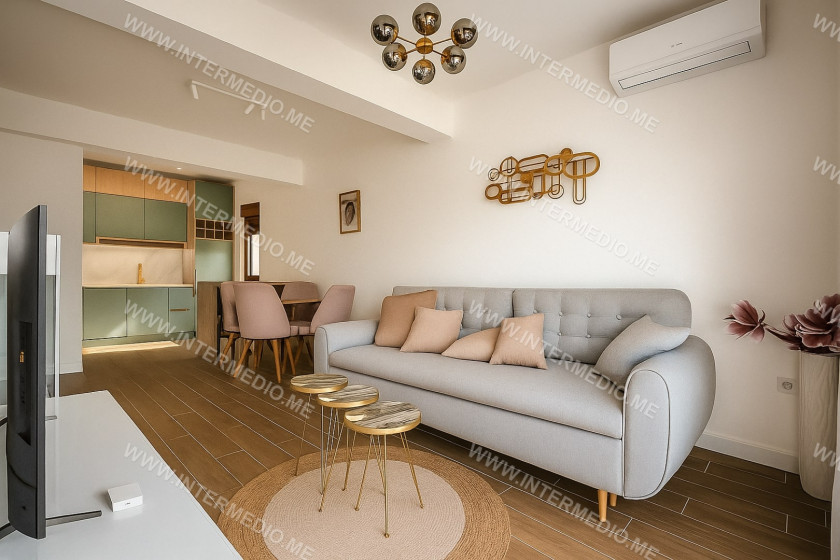 Stan je kompletno opremljen namještajem visokog kvaliteta, rađenim po mjeri, uz pažljivo birane materijale i detalje koji pružaju moderan, udoban ambijent.