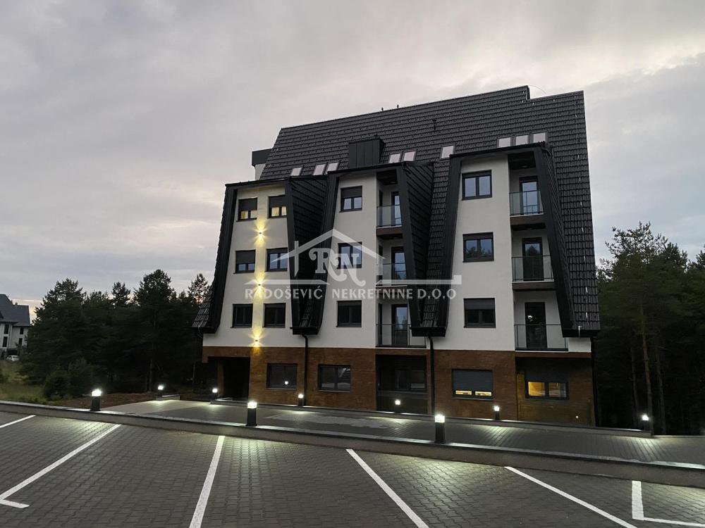 Opis: U potpuno novom, ambijentalno uklopljenom apartmansko-poslovnom objektu, nudimo vam odmah useljiv apartman sa građevinskom dozvolom, na 150m udaljen od hotela "CRNI VRH", u blizini maksija i autobuske stanice. Objekat je obezbeđen liftom a apartman je na trećoj etaži od ukupno četiri etaže. Apartman se sastoji od dnevne sobe u okviru koje je kuhinja i trpezarija, spavaće sobe, kupatila i lođe sa koje se prostire prelep pogled. Apartman je obezbeđen klima uređajem, u kuhinji i kupatilu je vrhunska keramika tipa "Porcelanosa" i u svakoj sobi je električni radijator. Kupac prve nekretnine ima pravo na povraćaj PDV-a u iznosu od 10% od cene apartmana. Kontakt Dragoljub Burdžić 063/575-359 Agencijska provizija 2%