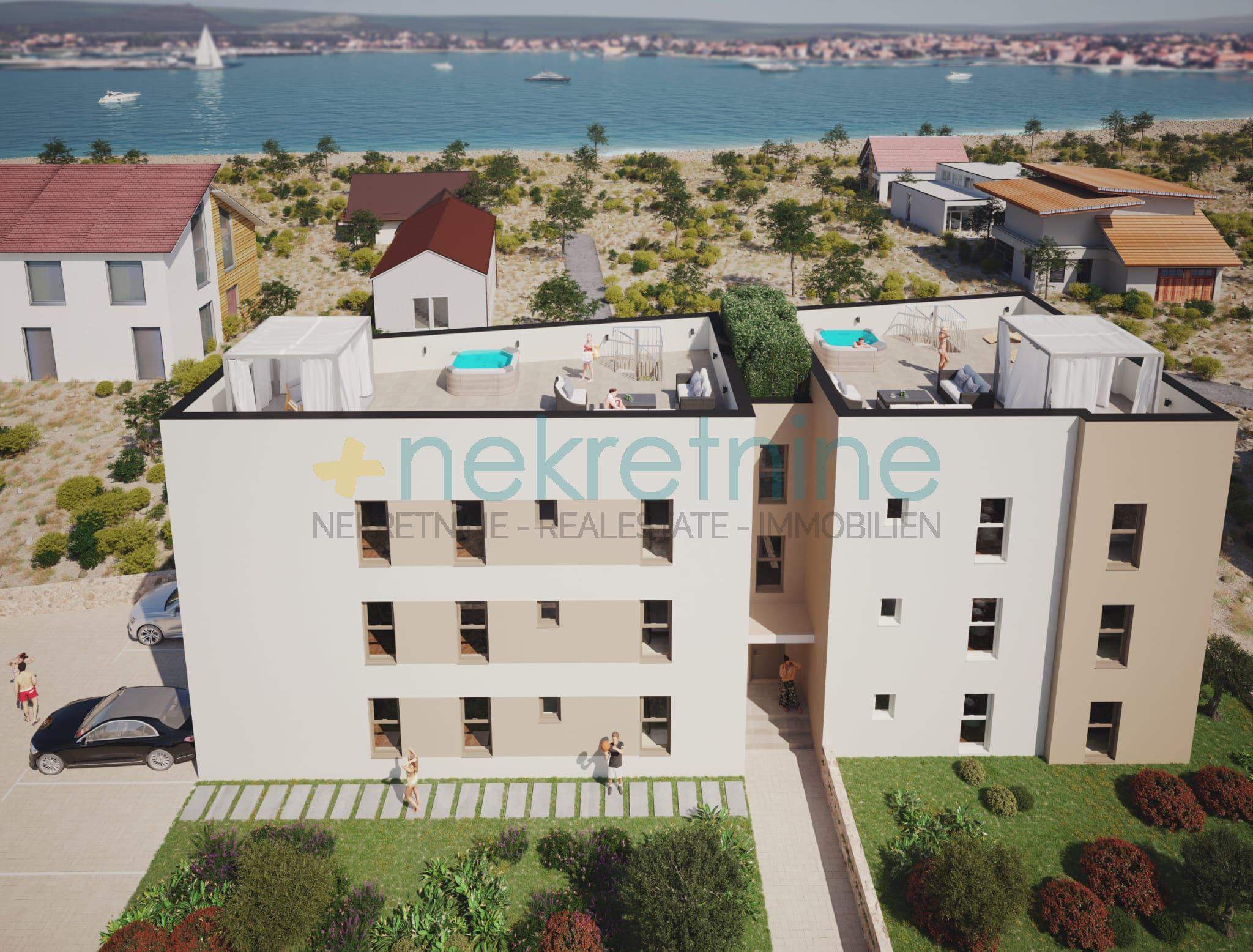 O PROJEKTU:Gradimo za Vas 6 luksuznih stanova s visokim standardom gradnje, na TOP lokaciji, Sukošan III. Punta - 30 m od mora, pogled na more, blizina svih sadržaja, centar.Objekt građen sa materijalima visoke energetske učinkovitosti, velike klizne staklene stijene, vrhunska stolarija, low-e troslojno staklo sa alu roletama i rolo/plise komarnicima.Svaki stan/apartman ima osigurano parkirno mjesto.Prizemni stanovi imaju vrtove, dok se na II. katu nalaze 2 PENTHOUSE-a koji imaju krovne terase sa jacuzzijima i pogledom na cijeli zadarski arhipelag.Protuprovalna/Protupožarna vrata....